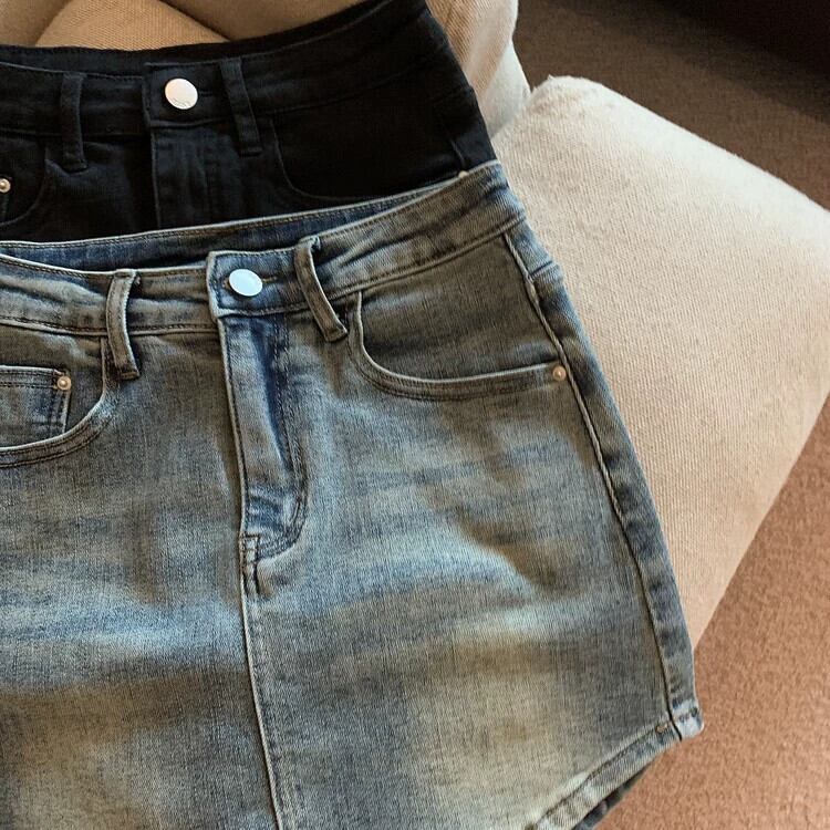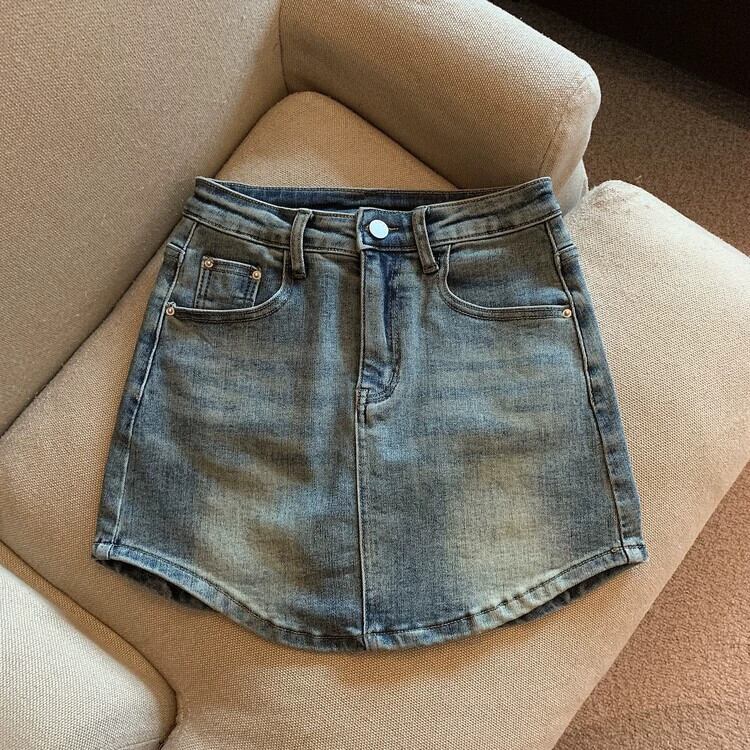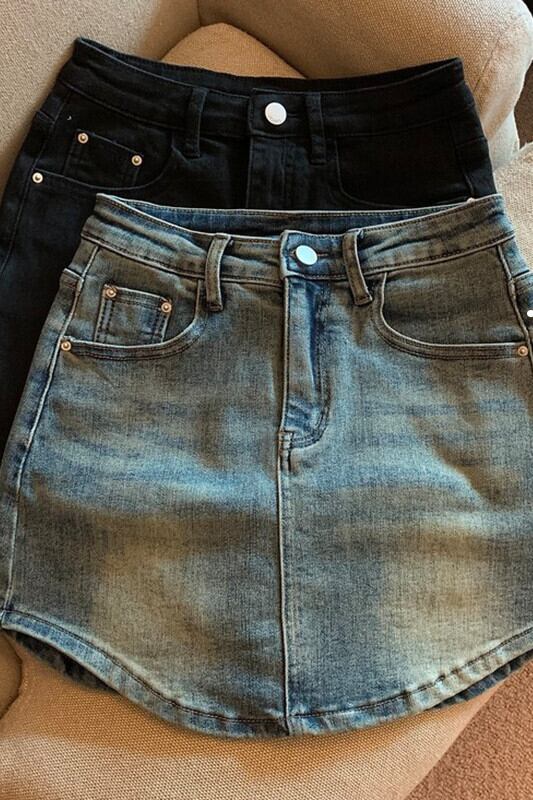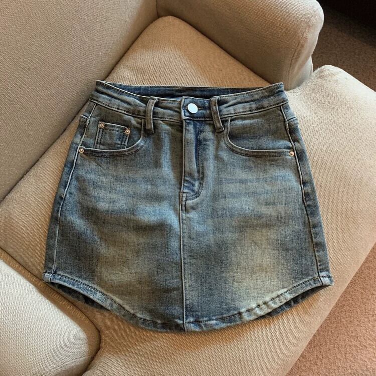 デニムバッグヒップスカート女性小男夏 2023 新しいハイウエスト A ラインスカートデザインセンスニッチショートスカート ハイウェスト サマー 夏物 Aライン 8571623870098108