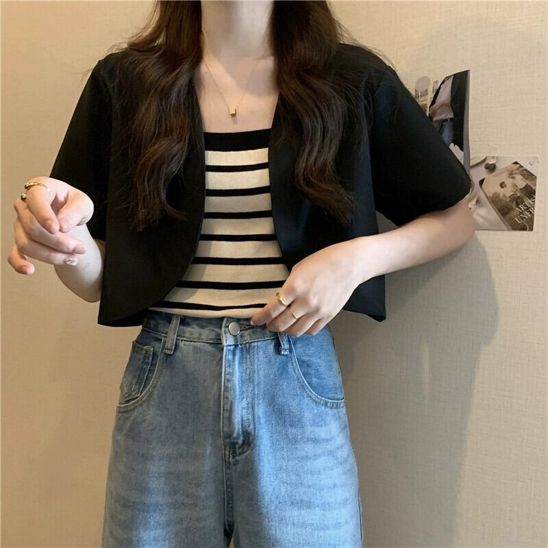 黒のフロントショルダースーツジャケット女性の夏薄いセクション 2023 新しいデザインセンスニッチユニークなショートスーツ ブラック サマー 夏物 8571678620333584