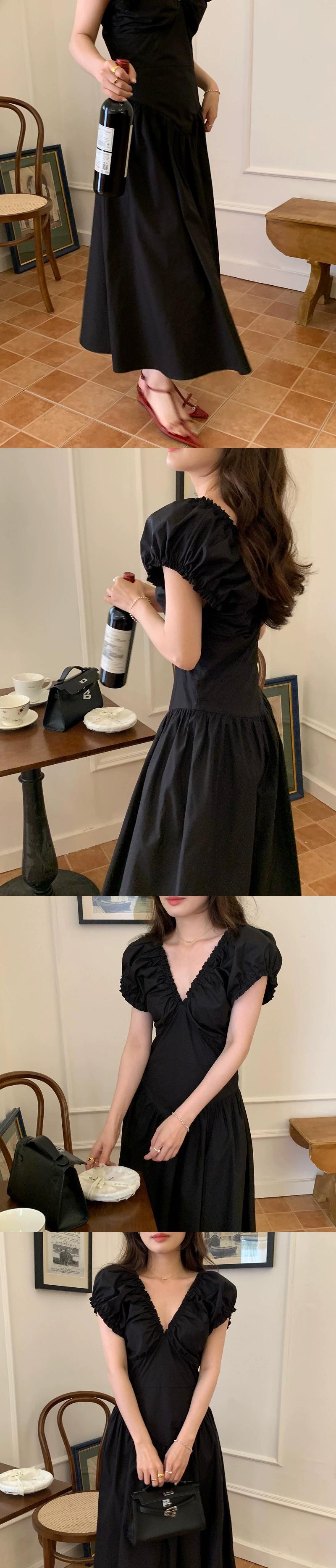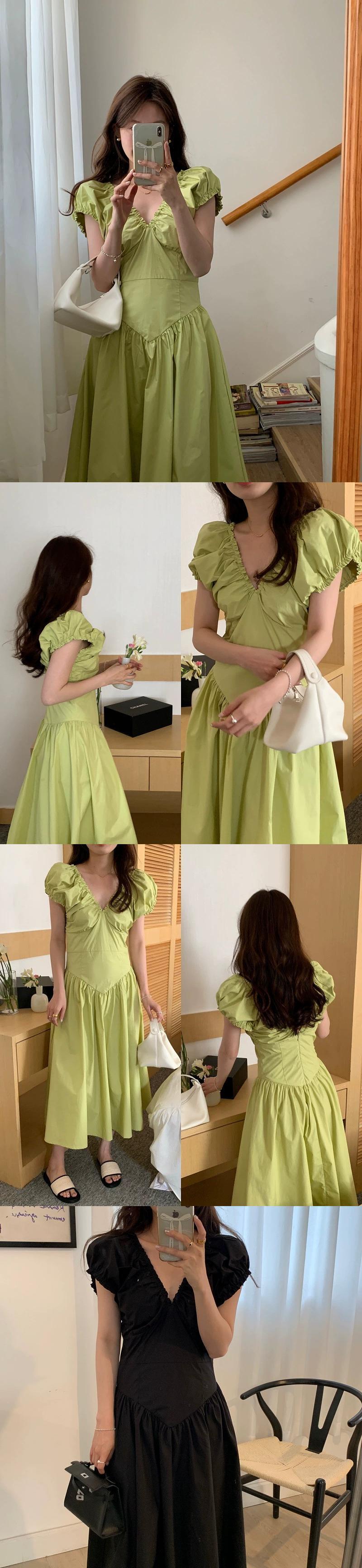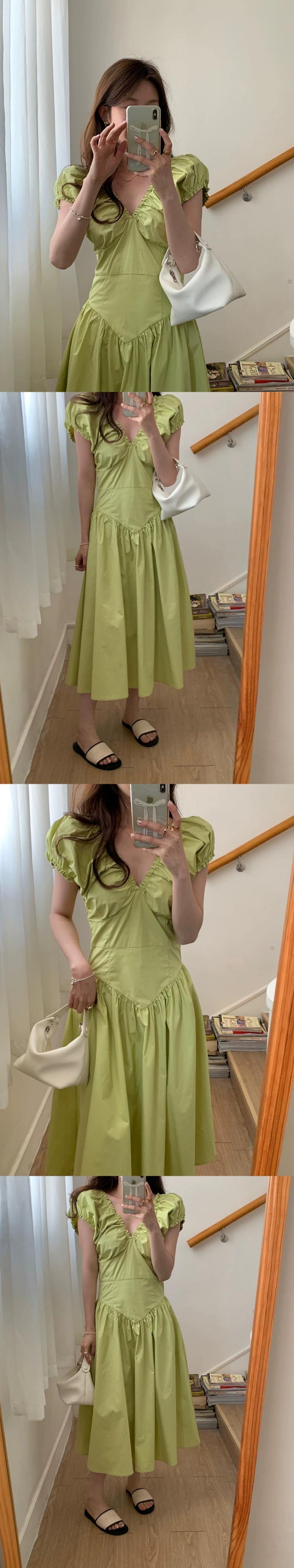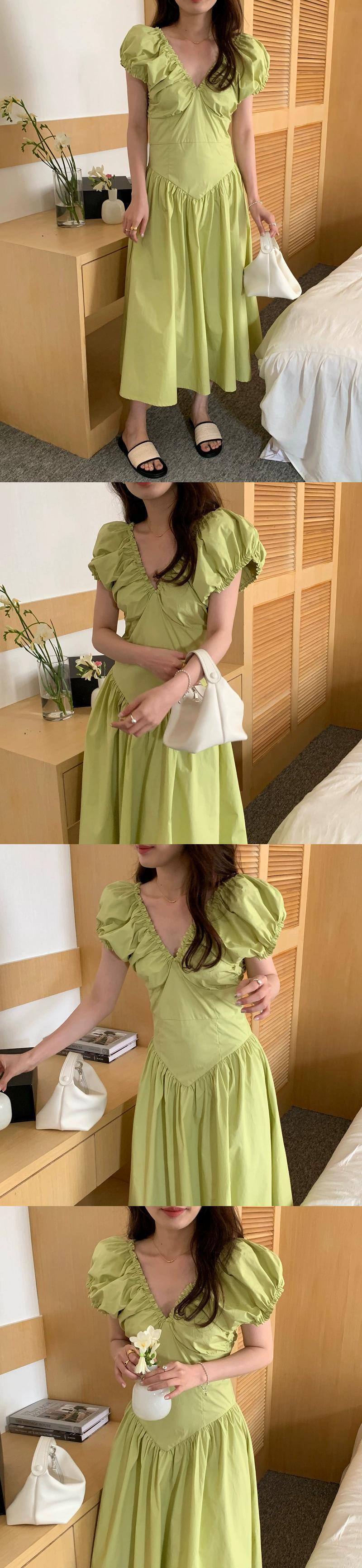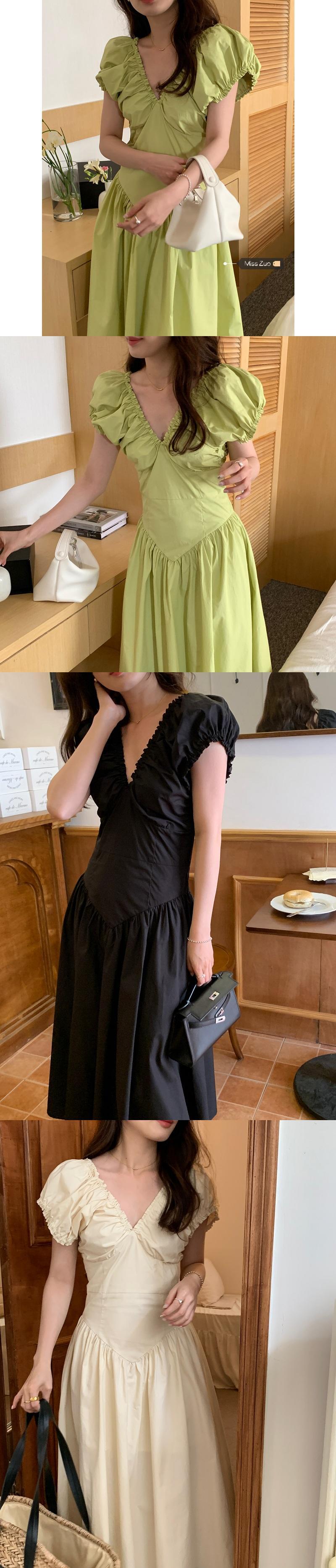 グリーン V ネックドレスの女性の夏の 2023 新しいフランスの気質ハイエンド感覚ウエスト痩身スカート小男 サマー 夏物 Vネック 8571610545433073