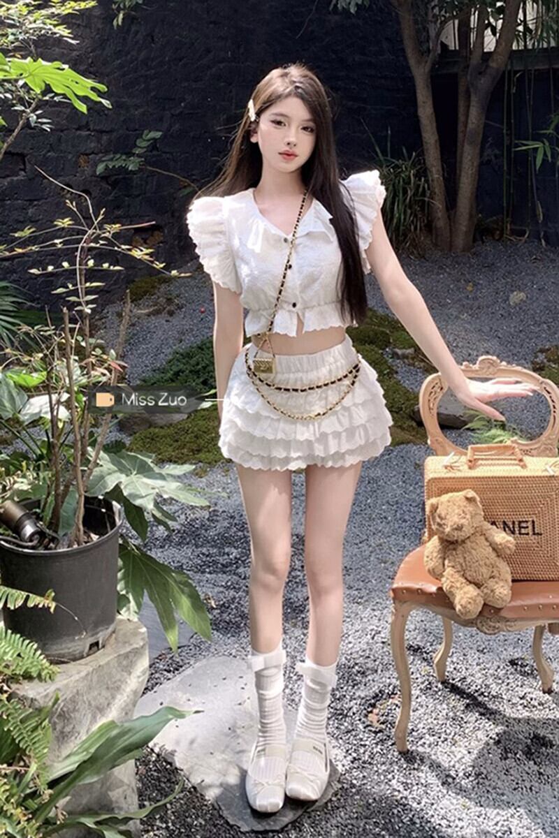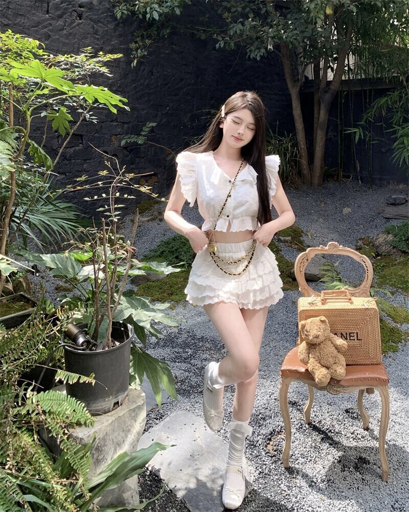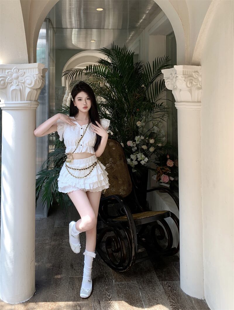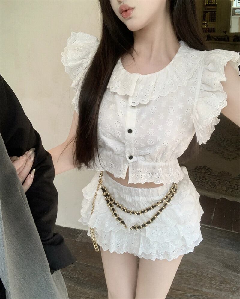 Feifei スリーブショートトップ女性の夏のデザインセンスニッチ 2023 新しい小さな白いシャツ ホワイト サマー 夏物 8571682216319776