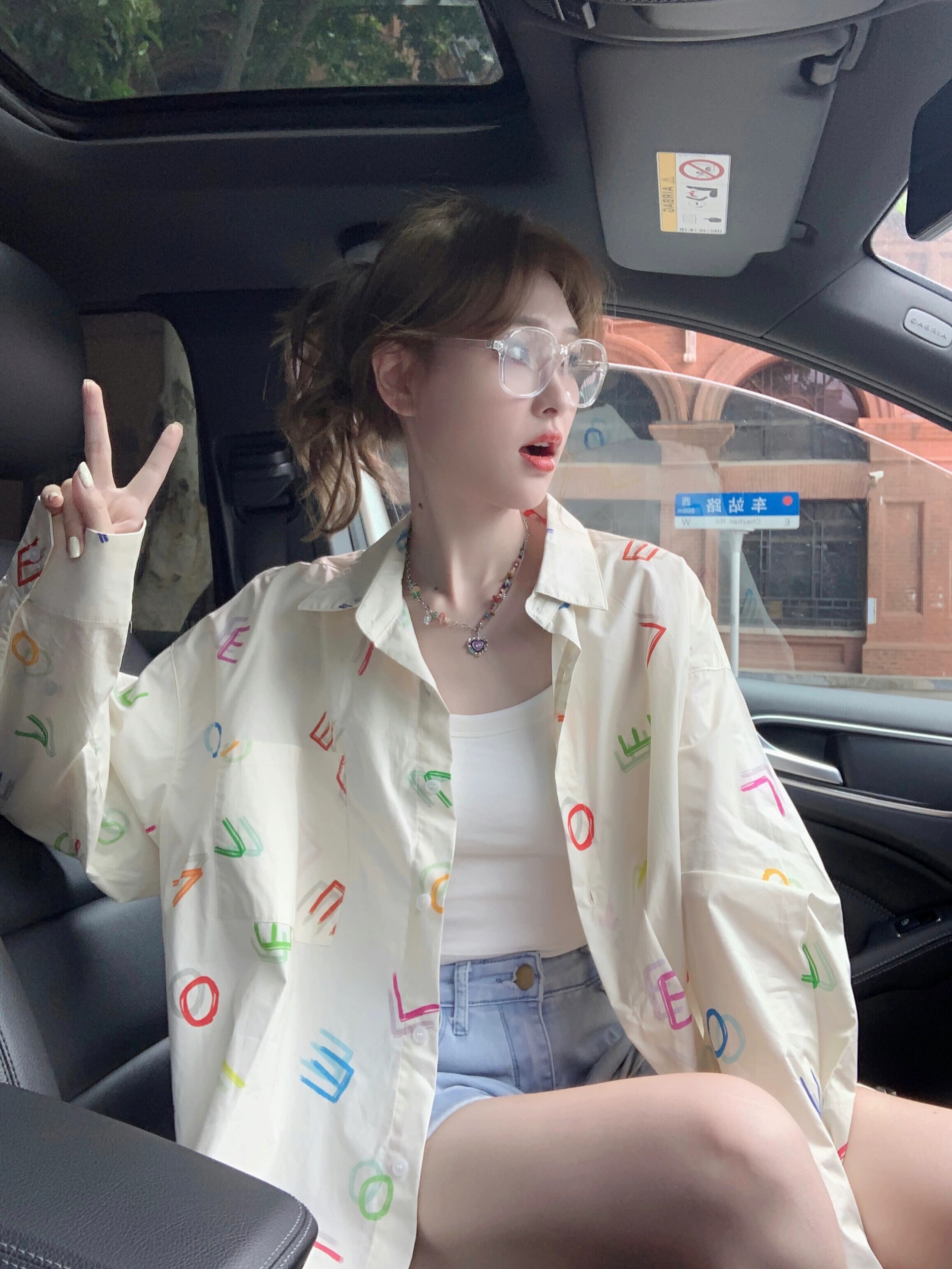 レター日焼け止めシャツジャケット女性の夏カジュアルシャツ 2023 新しいデザインセンスニッチ香港スタイル長袖トップ ロング サマー 夏物 8571683155141967