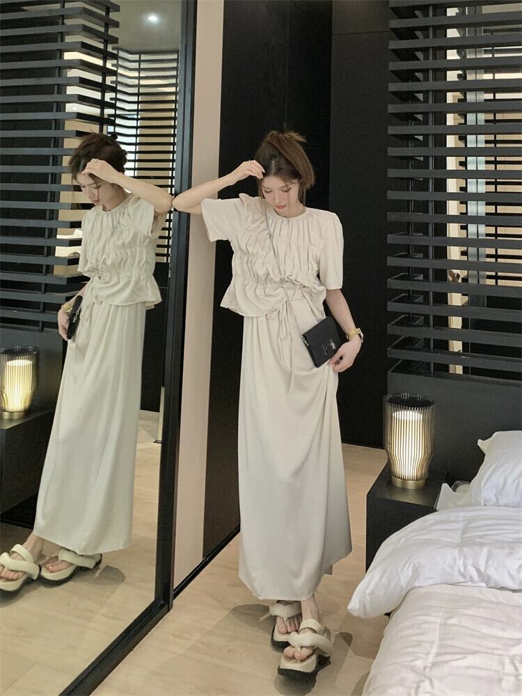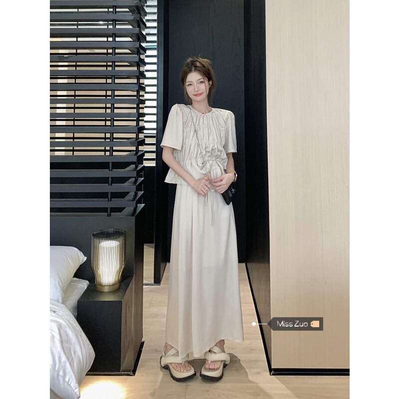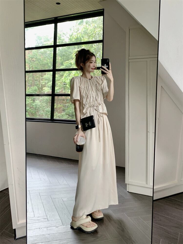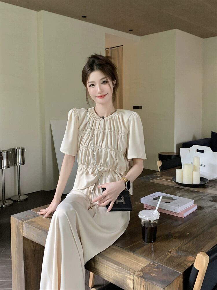 二つ折り半袖シャツ レディース 2023 年夏新作 高品質 優しい風 小さめ シック シック オールマッチ ショートトップ サマー 夏物 8571679460038876