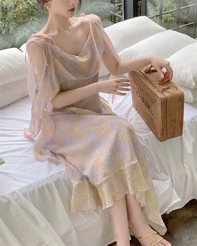 美しいスリングドレス女性の夏 2023 新しいフランスの気質ハイエンドビーチスカート妖精スーパー妖精スカート サマー 夏物 8571633229677214