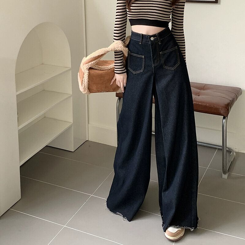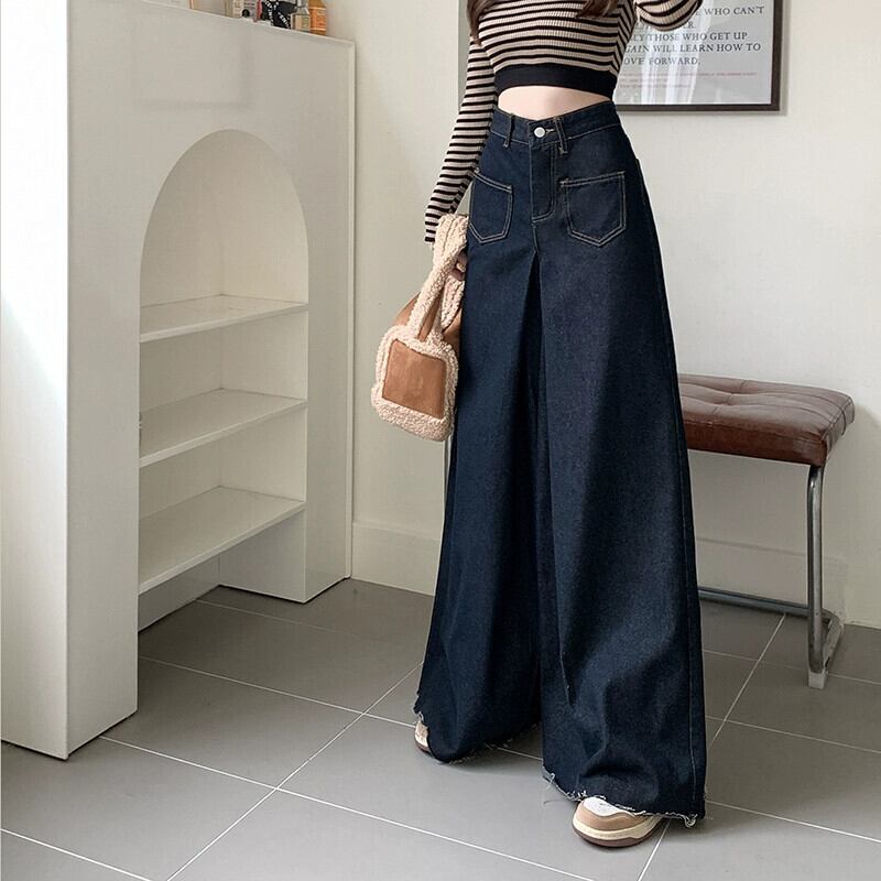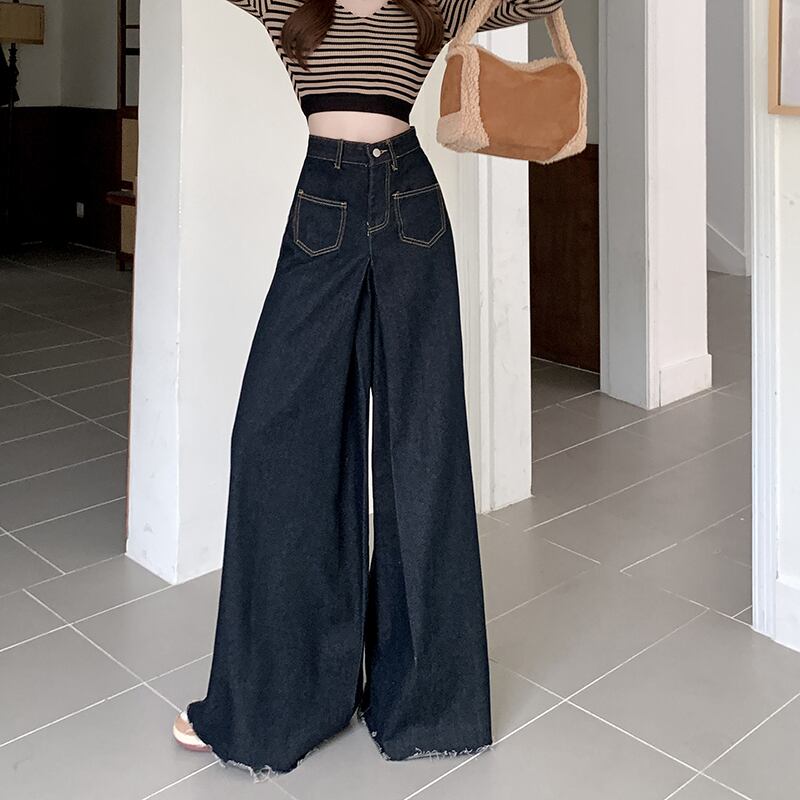 レトロジーンズレディースデザインセンスニッチワイドレッグパンツ2023春新作ハイウエストドレープルーズモップパンツ ハイウェスト スプリング 春物 8571670346043769
