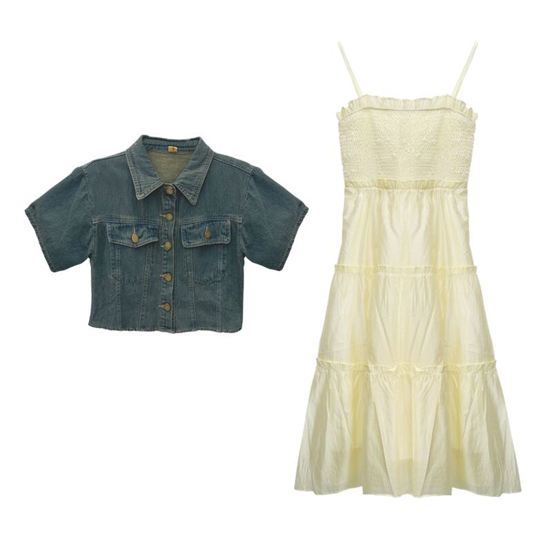 デニム半袖ジャケットの女性のサマードレスカーディガン 2023 新しいスタイルの小さなショートトップ超素敵 夏物 8571611875002247