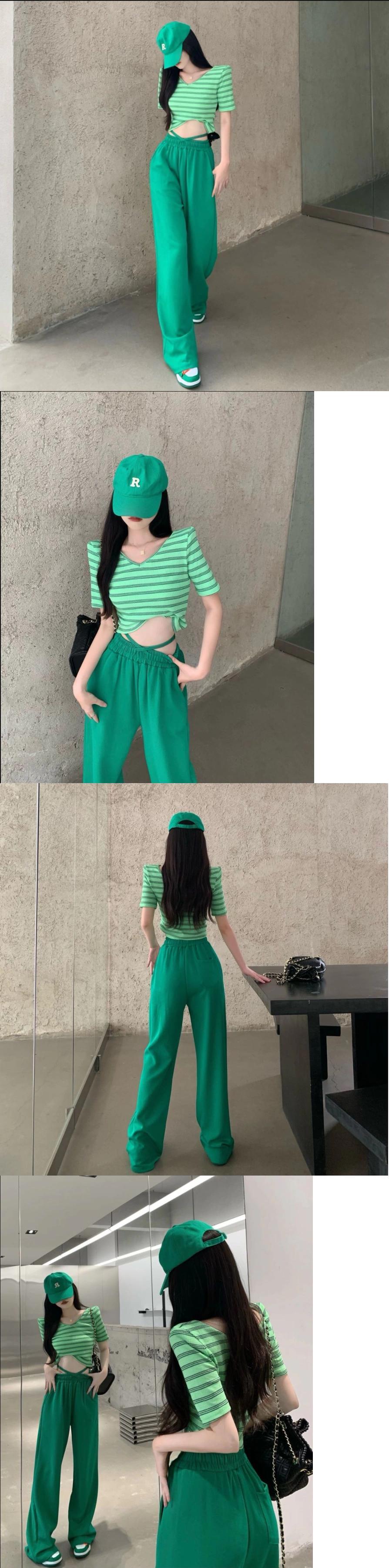 色:ピンクのラウンドネックT,ピンクのVネック前後T,グリーンVネック前後T,ドラゴンフルーツパンツ