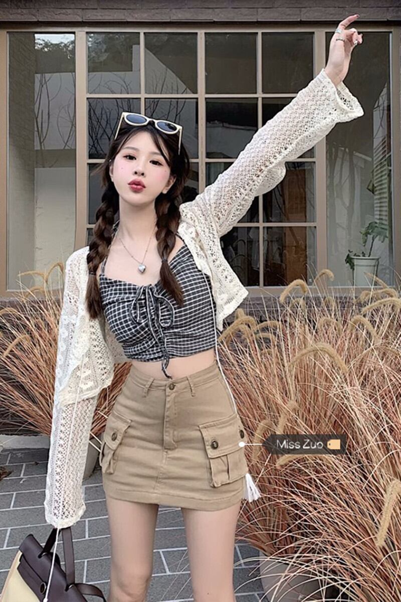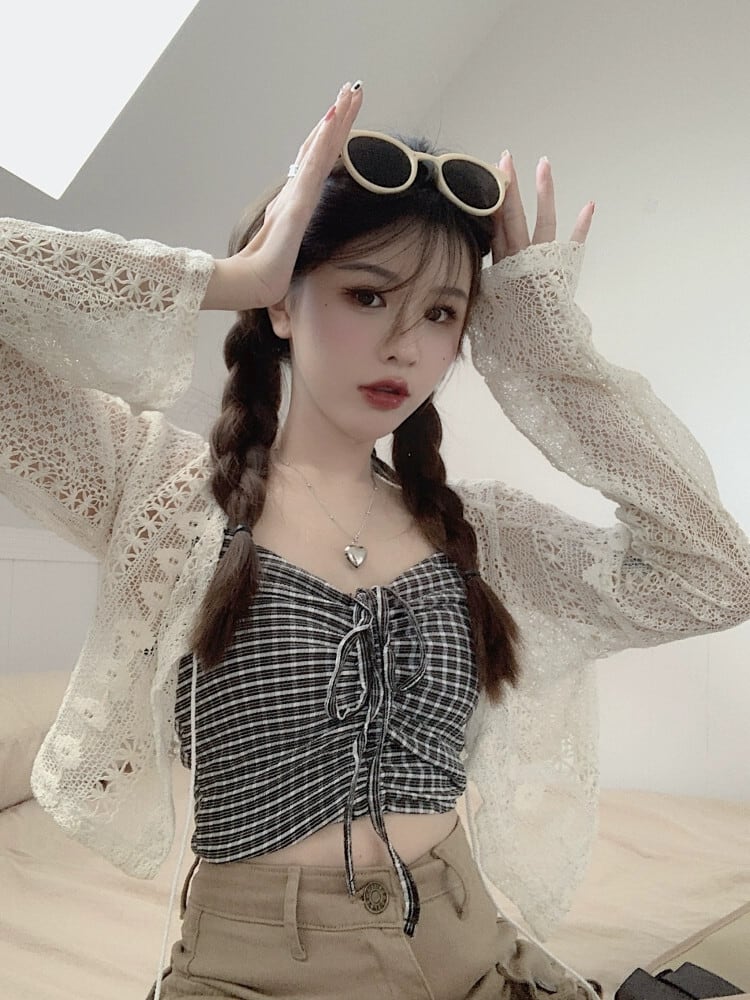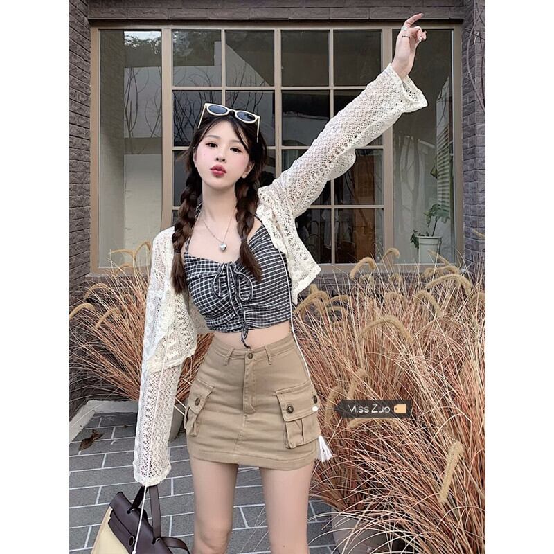 日焼け止めニットカーディガン女性の夏の薄いセクション中空ショートコート 2023 新しいスリング外側ブラウス小さなショール サマー 夏物 8571623732094343