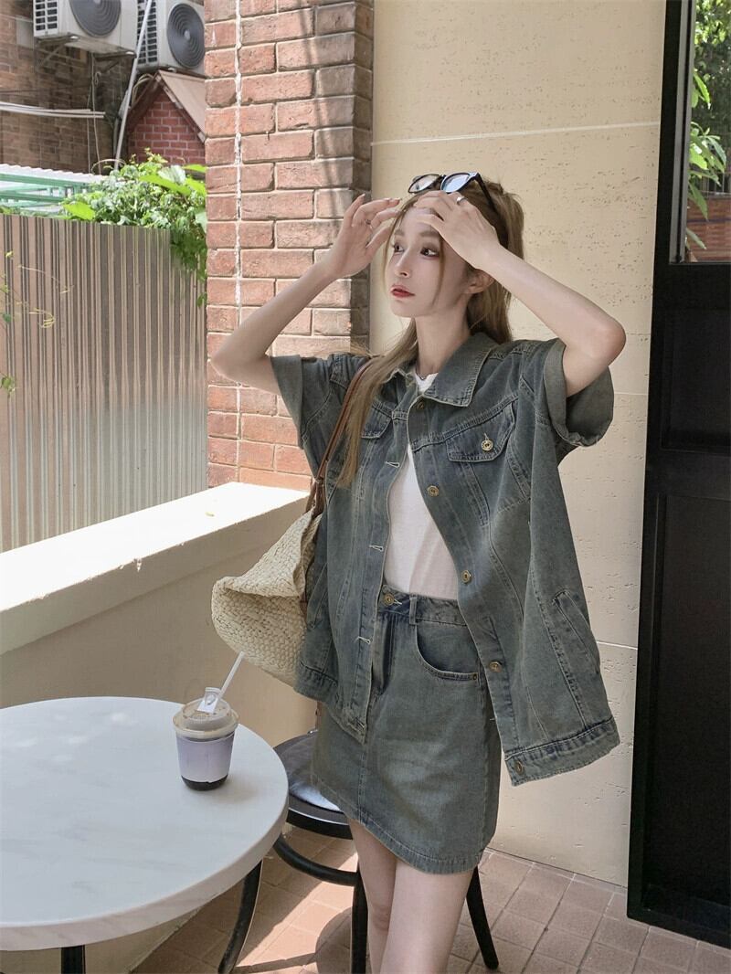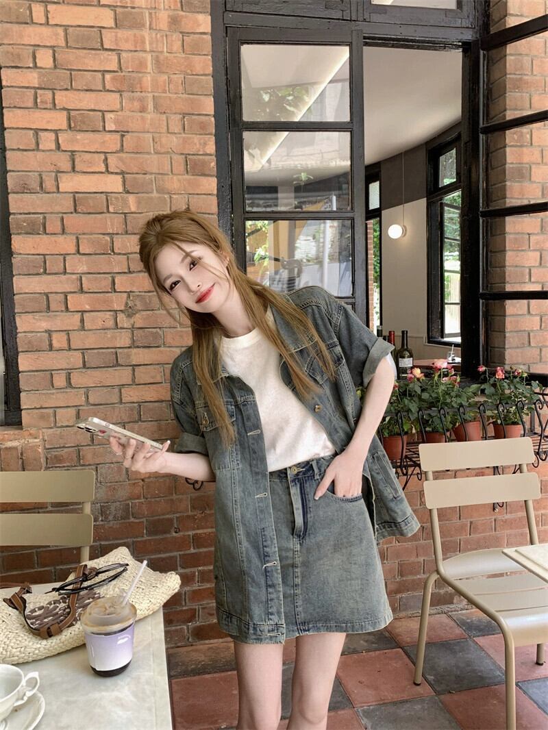 半袖デニムジャケットの女性の夏オールマッチ 2023 新しい香港風味レトロシックなルーズ eign スタイルのハイエンドトップ サマー 夏物 8571699303565346