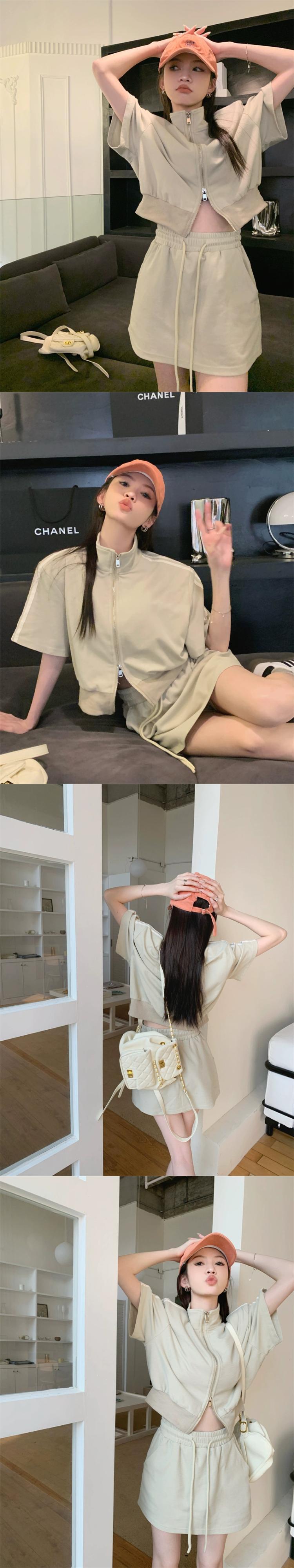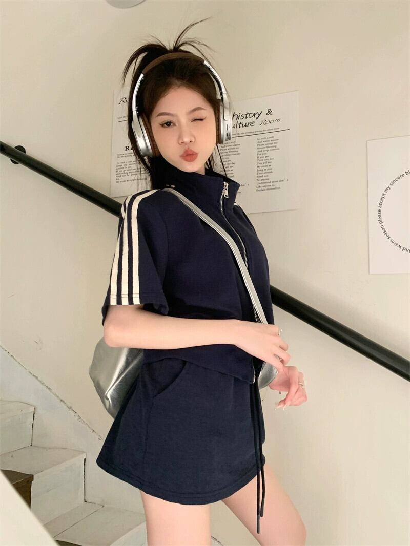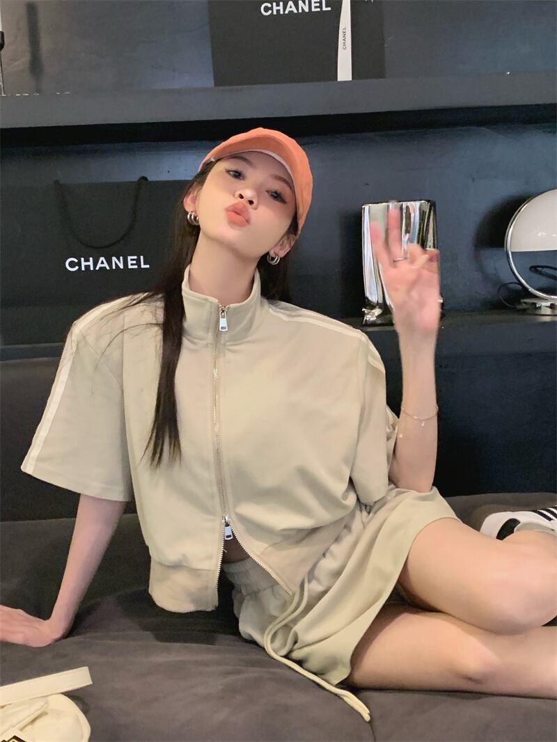 アプリコットジッパー半袖Tシャツレディース夏デザインセンスニッチアメリカンレトロゆったりカジュアルスポーツショートトップ サマー 夏物 8571698704763354