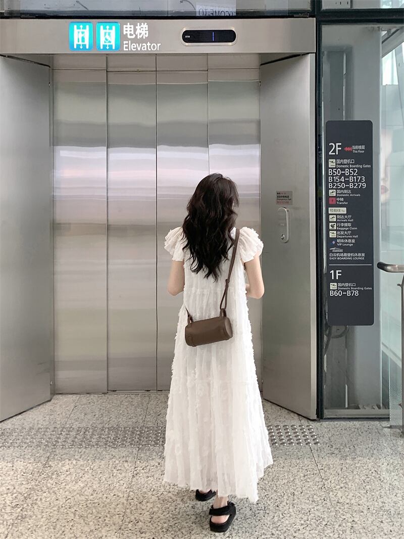 小さなフライングスリーブホワイトドレス女性の夏のニッチデザインセンスフレンチ初恋優しい風スーパーフェアリールーズロングスカート サマー 夏物 8571623773659971