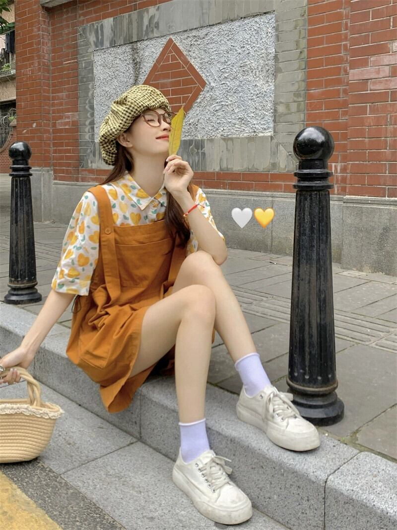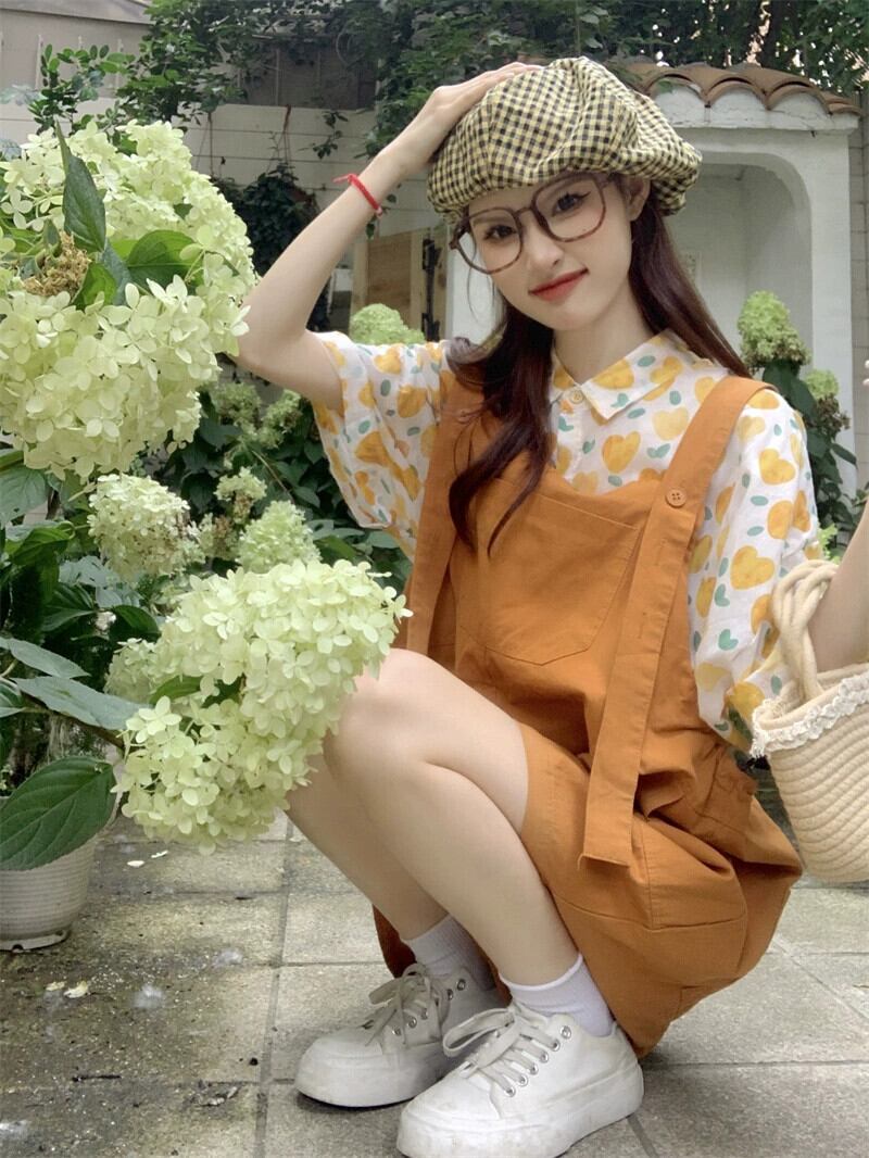 オレンジ色のサスペンダー ショーツ レディース ルーズ 小さい 5 点パンツ夏の新しいドーパミン ミルク Huhu ワイドレッグ パンツ サマー 夏物 ブルマー 8571694708714340