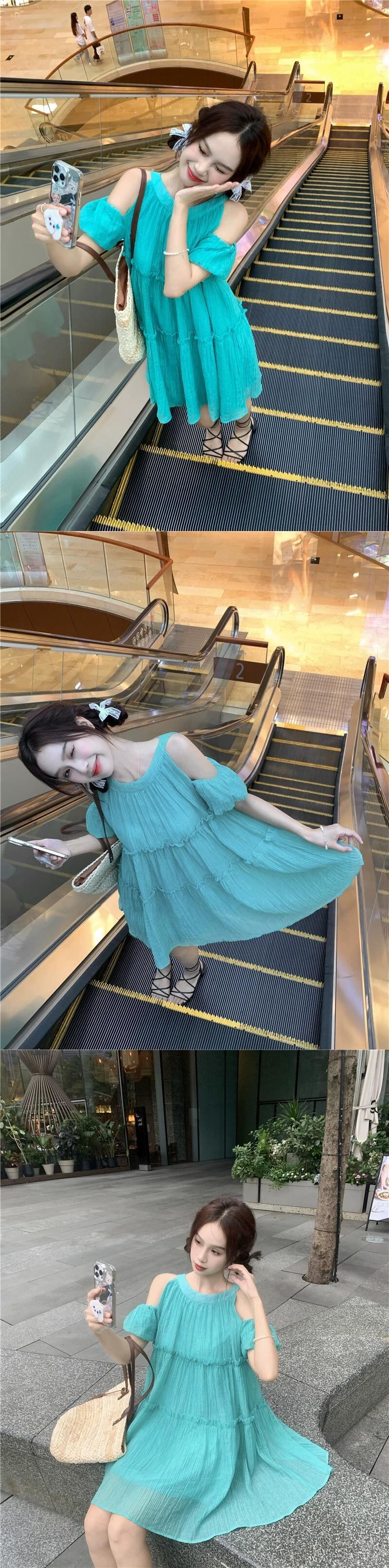 パフスリーブオフショルダードレス女性の夏の2023新しい甘くて優しいスタイル小人カバー腹人形スカート 大人ガーリー スウィート キュート カジュアル サマー 夏物 8571617617039454