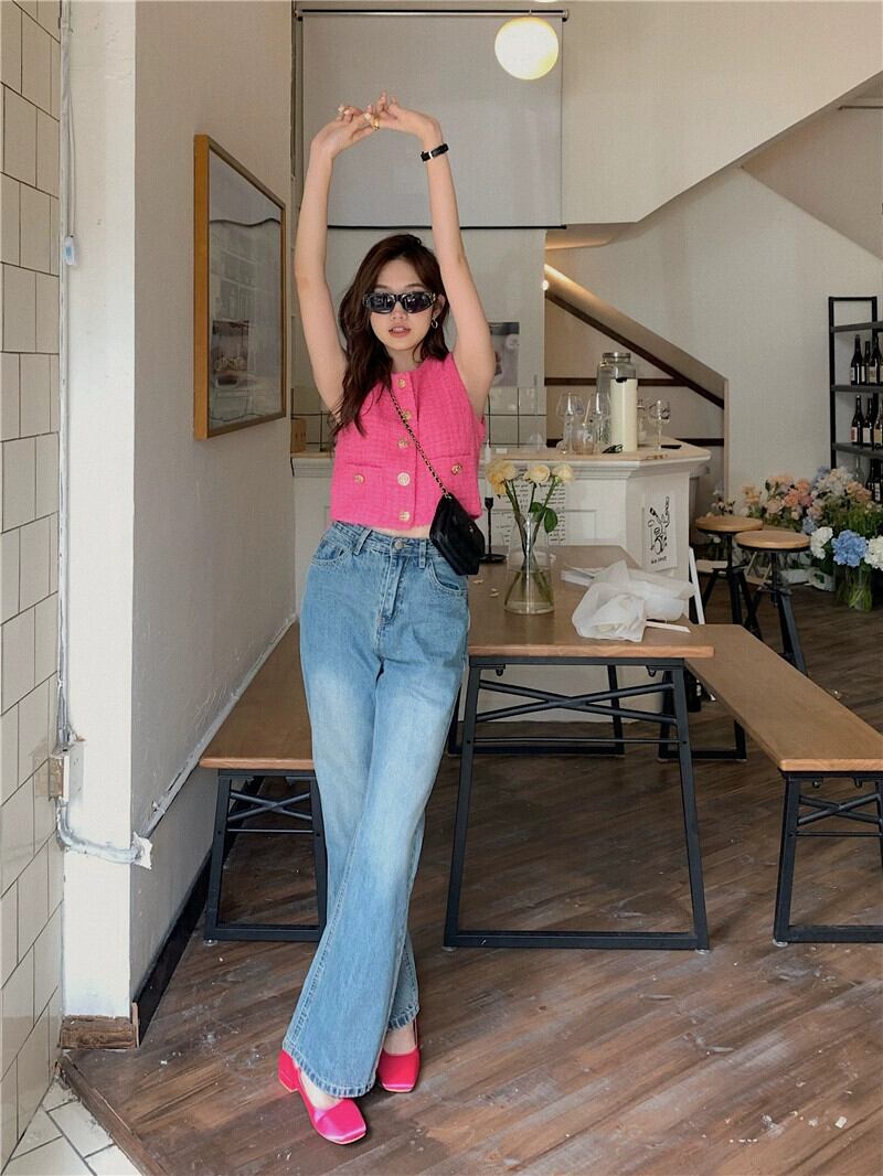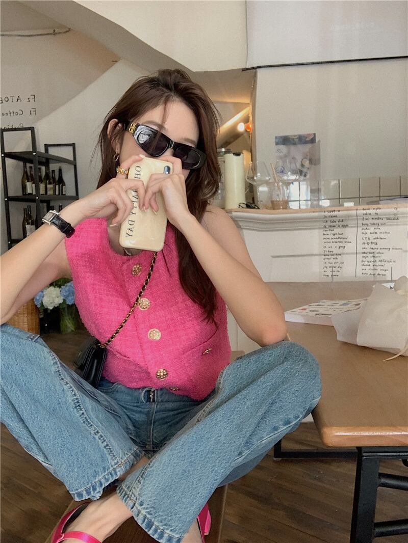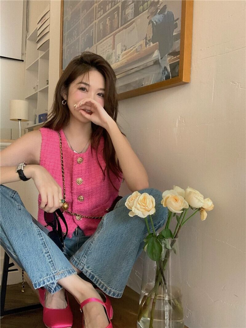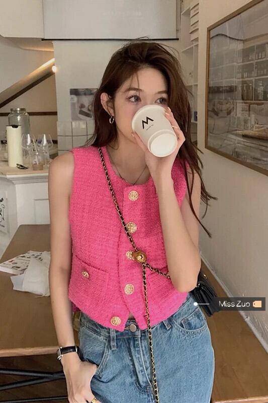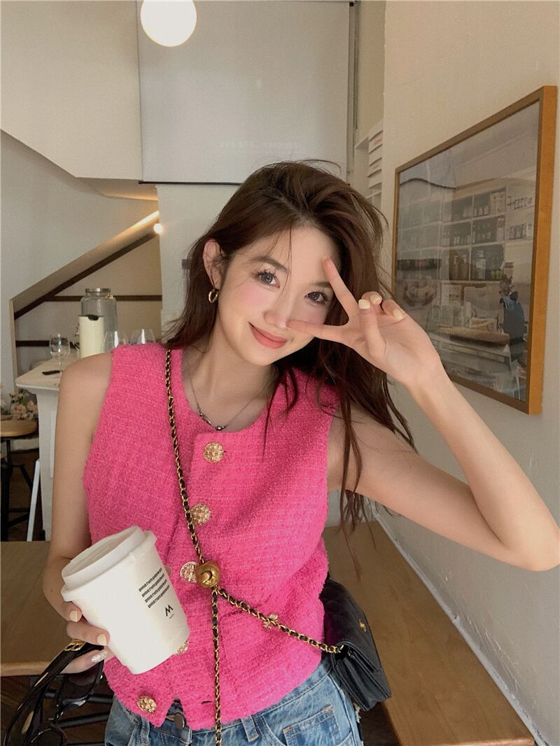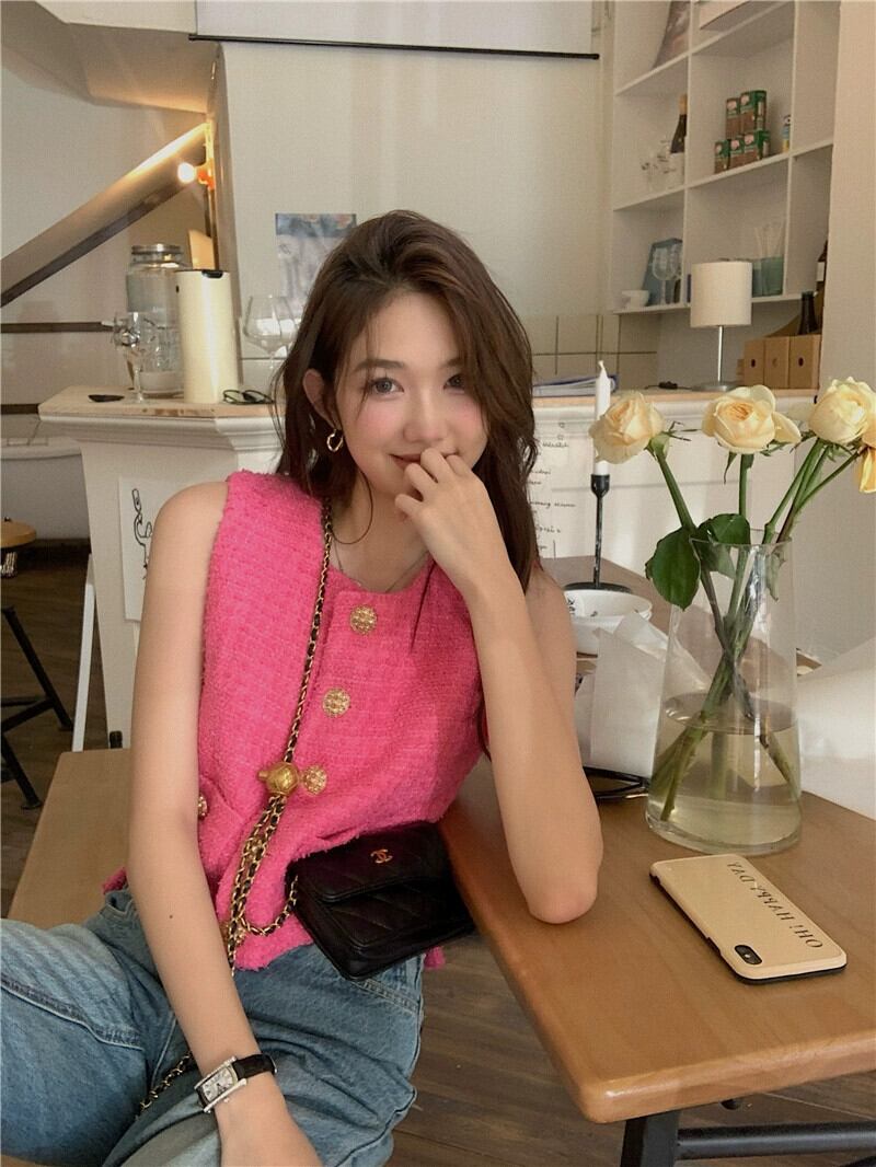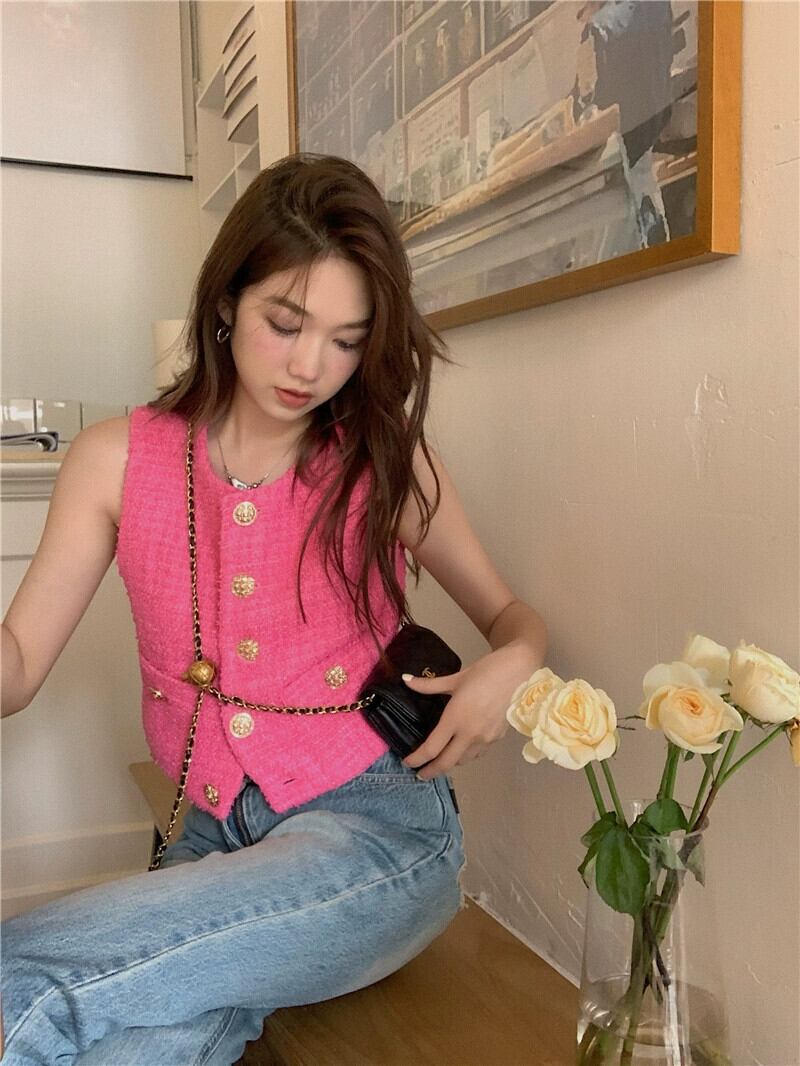 ピンクの小さな香りのウィンドベストジャケット女性のアウターウェアベストベスト 2023 春の新ネットレッドショートチョッキ スプリング 春物 8571650051688920