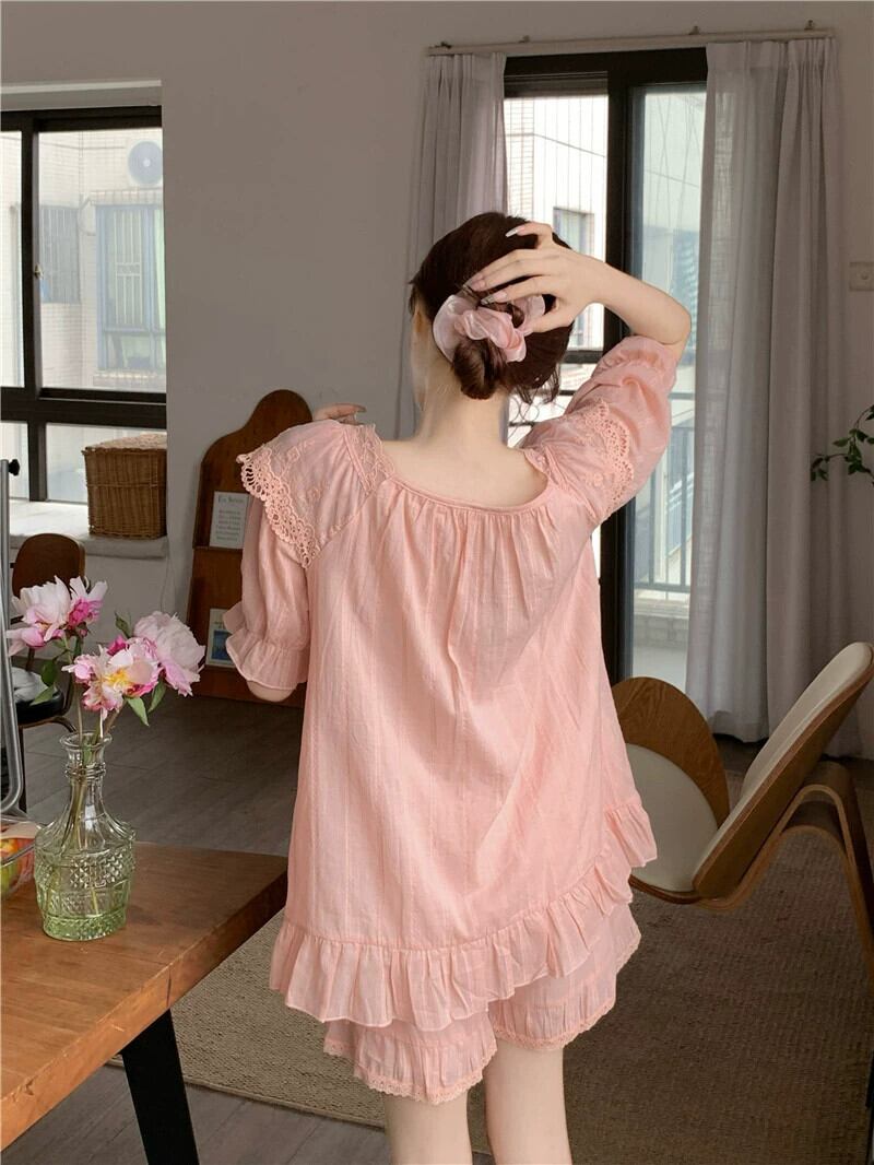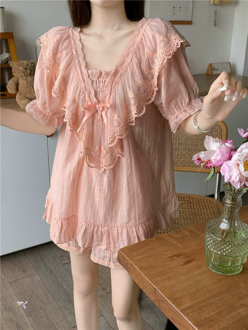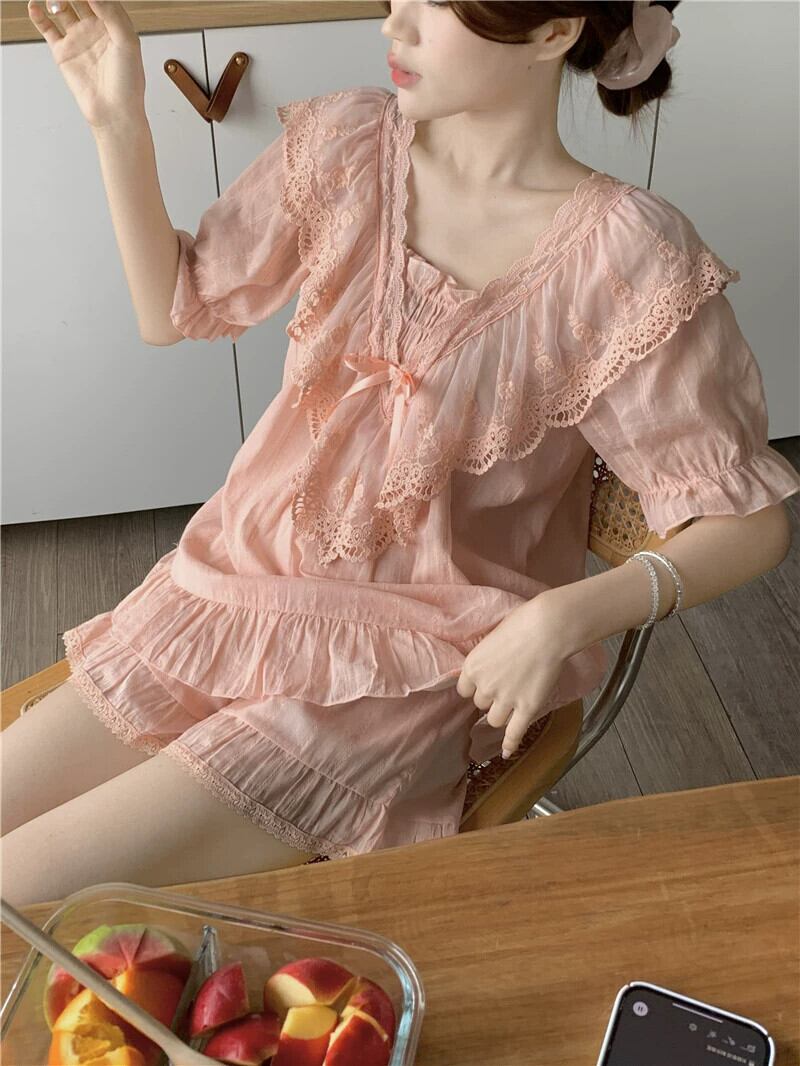 オレンジピンクのコートスタイルの半袖パジャマ女性は2023年夏に外で着ることができます新しいかわいいと甘いホームサービススーツ 大人ガーリー スウィート キュート カジュアル サマー 夏物 8571682501383480