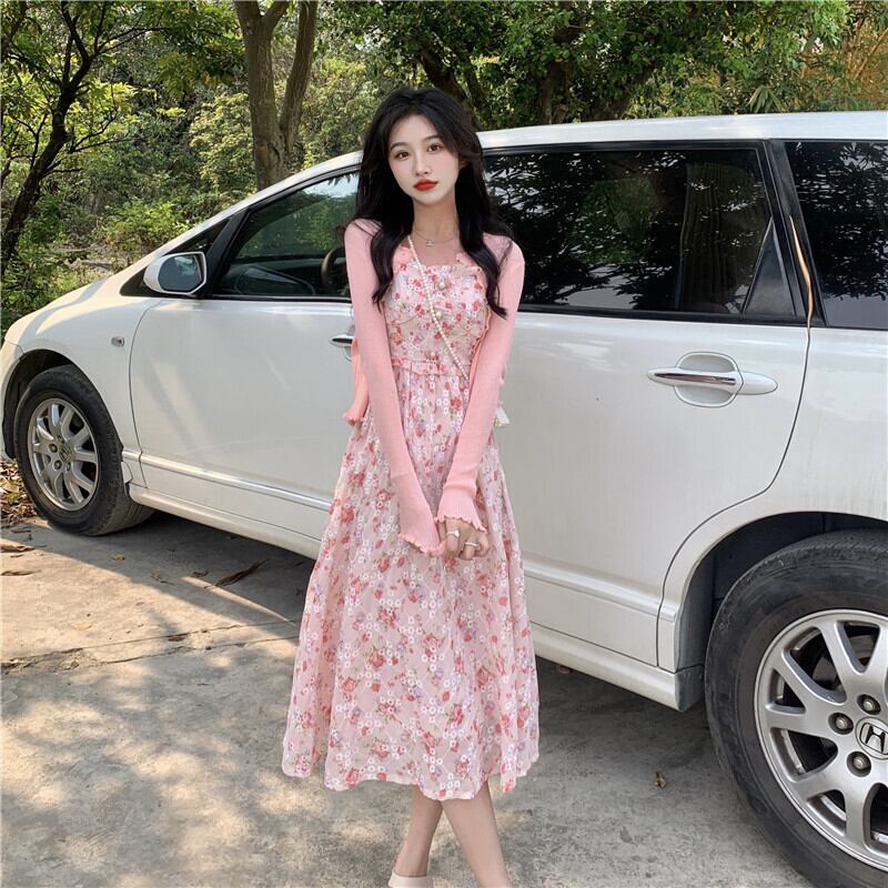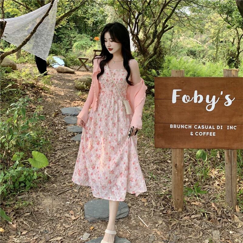 花柄スリングドレス女性の夏の 2023 新しいフレンチスタイルのシックで美しい海辺の休日のシフォンロングスカート サマー 夏物 8571654430494538