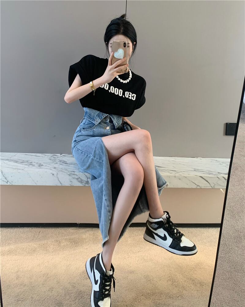 色:2330#白いTシャツ,2330#黒のTシャツ,A5-0332#黒スカート,A5-0332#ブルースカート