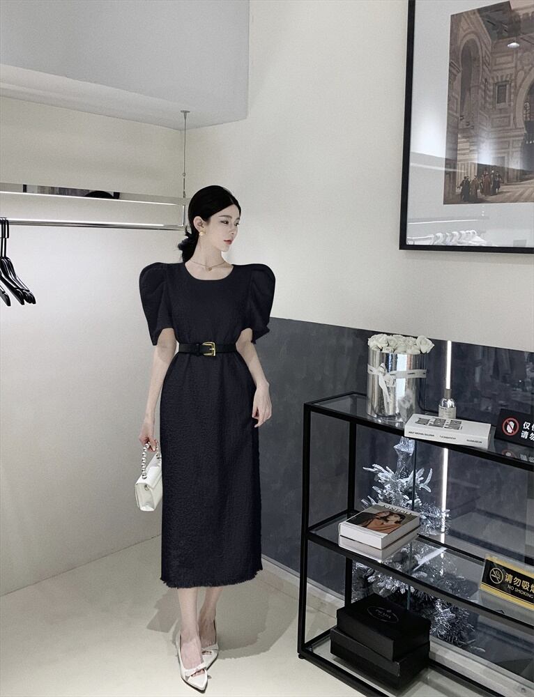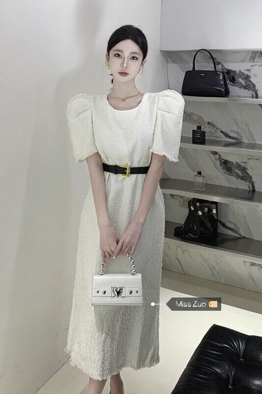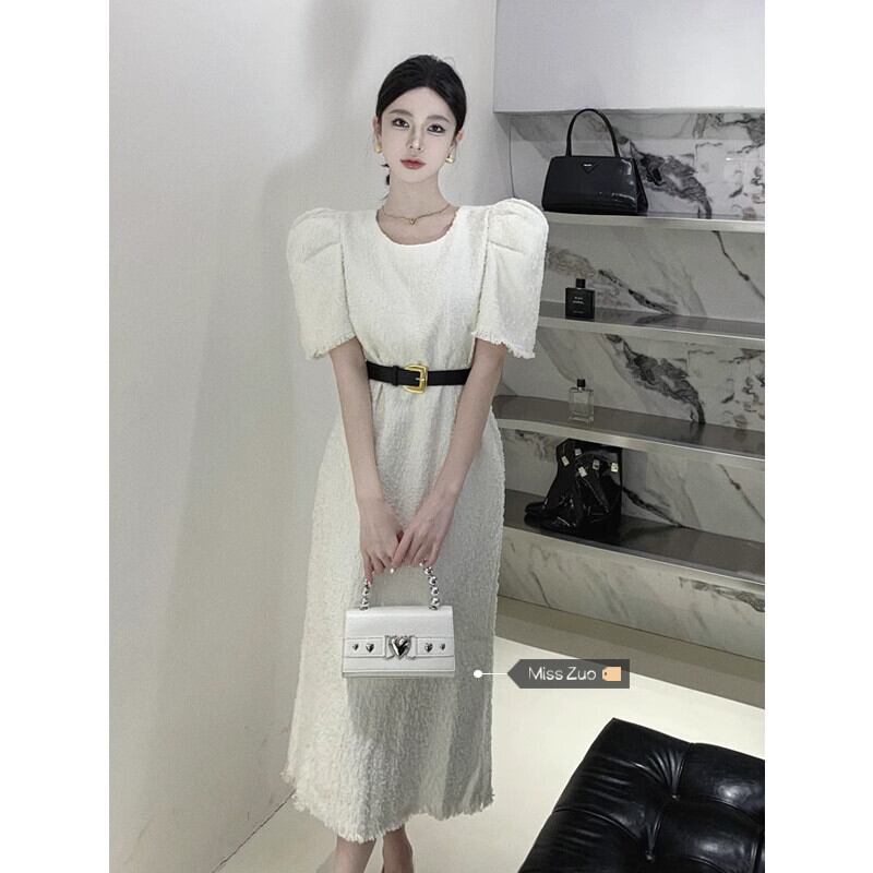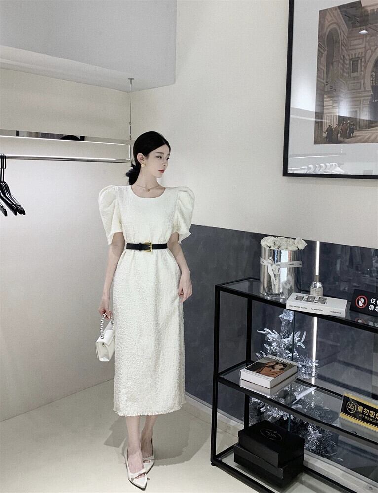 ホワイトドレスレディース2023夏新作フランス気質高級感小柄スリムパフスリーブロングスカート サマー 夏物 8571652066586166