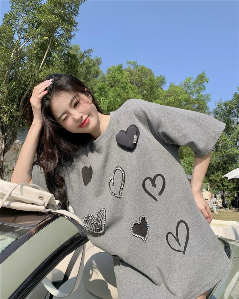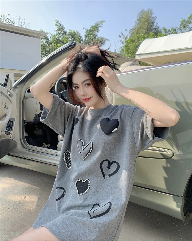 グレー半袖Tシャツレディース2023年夏新デザインセンスニッチルーズ薄手ファッションボトム欠落トップ サマー 夏物 8571647589276431