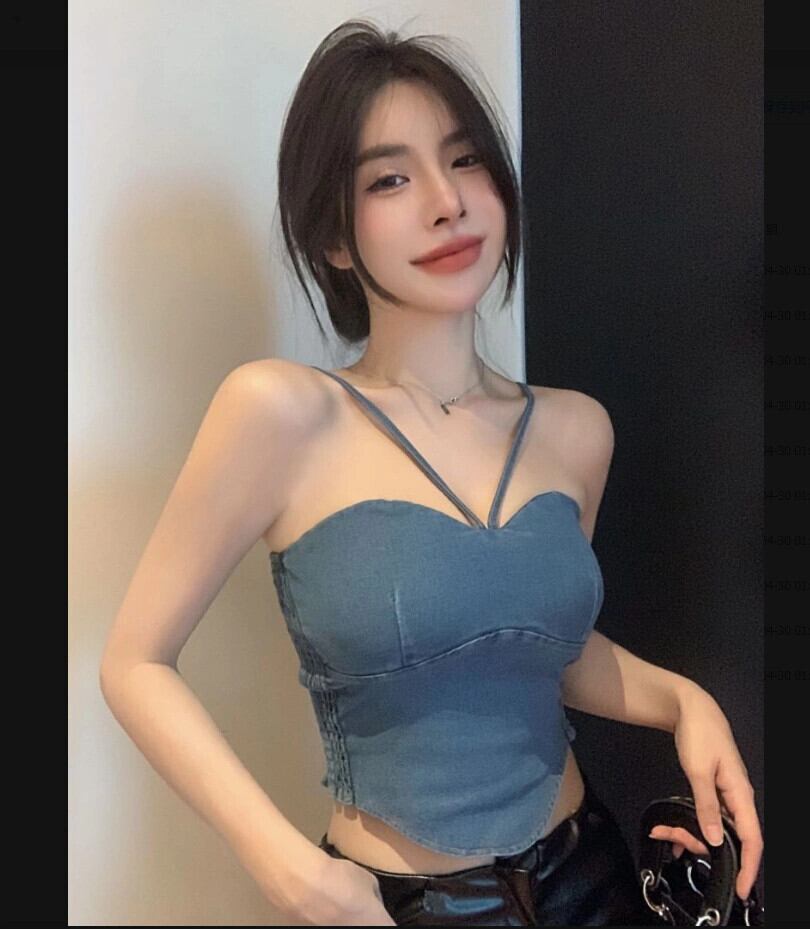 デニムブルーキャミソールレディースアウター夏ラップ胸インナーセクシーな純粋な欲望の女の子ホルターネックトップ高級感 サマー 夏物 ピュア 8571617911219305