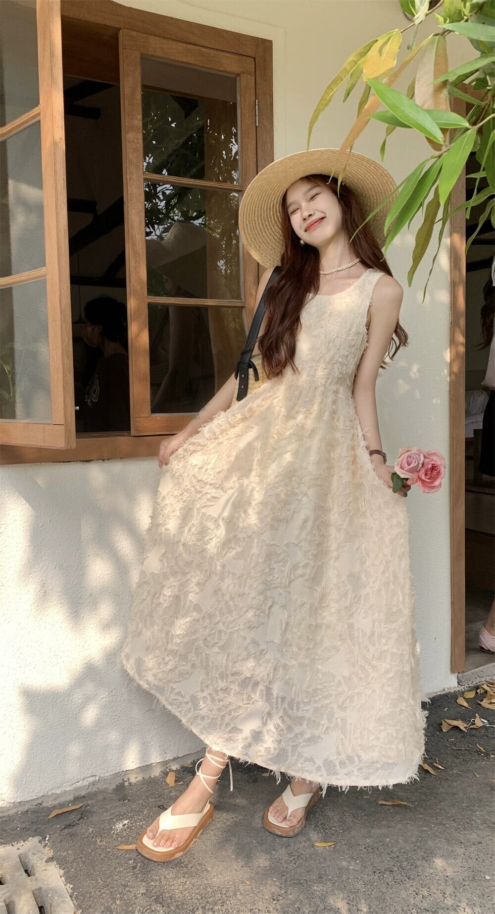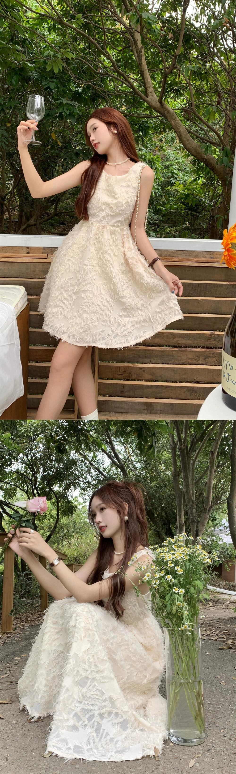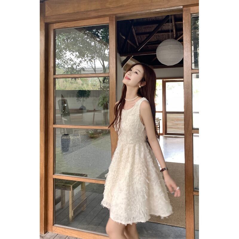 アプリコットノースリーブベストドレス女性の夏2023新しいフレンチスタイルの優しい風スーパーフェアリーテルホリデーロングスカート サマー 夏物 8571622871446946