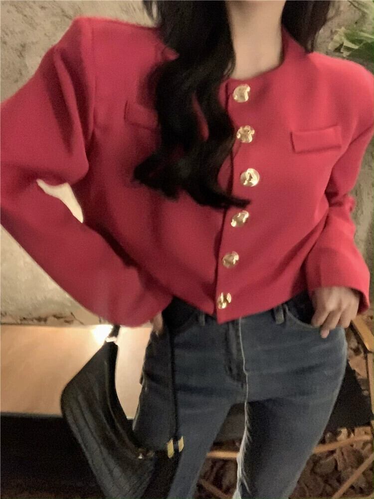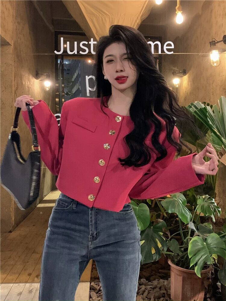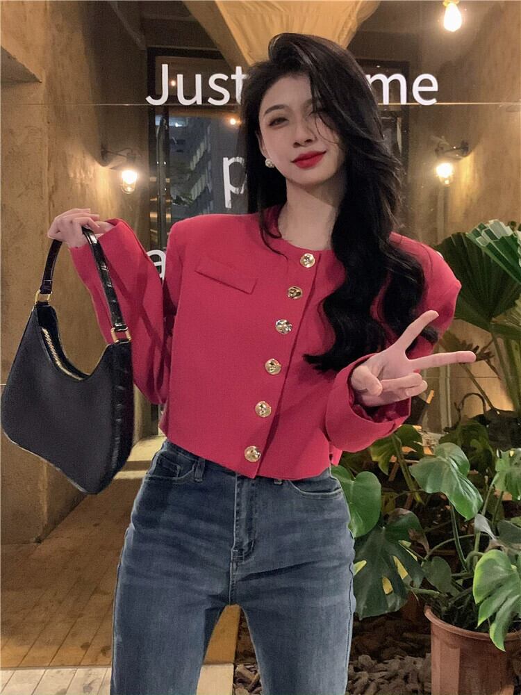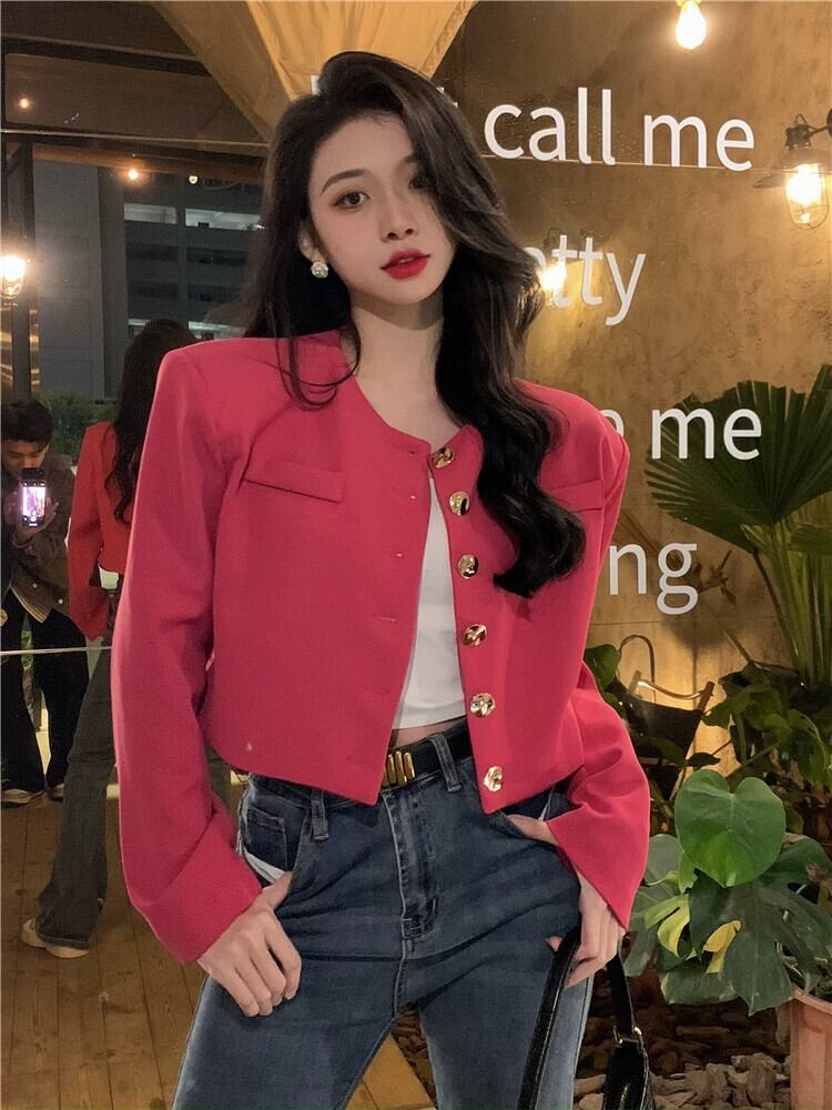 ローズレッドスモールフレグランススーツジャケットレディース春オールマッチ2023新作フレンチニッチハイエンドショートトップ スプリング 春物 8571669826509191