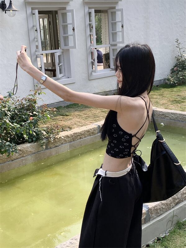 クロスタイ小さなキャミソール女性のラップ胸インナーウェア夏純粋な欲望の女の子セクシーなチューブトップアウターウェアホルタートップ サマー 夏物 ピュア 8571660552670704