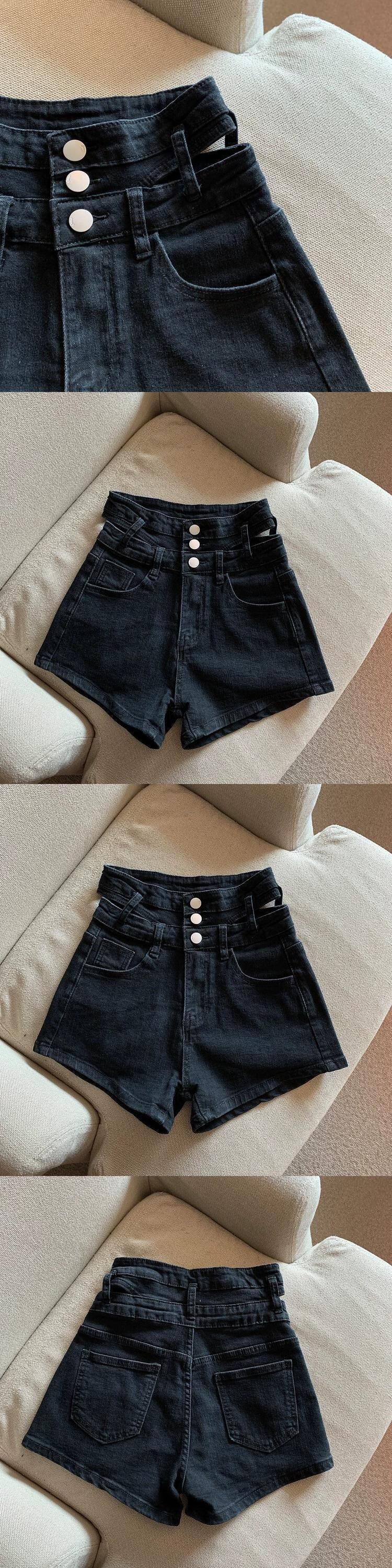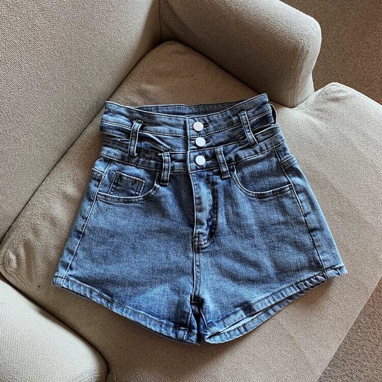 ブルーデニムショートパンツレディース2023年夏新デザインセンス小ぶりハイウエストスリムAラインパンツ ハイウェスト サマー 夏物 ショーツ ブルマー 8571622995121814