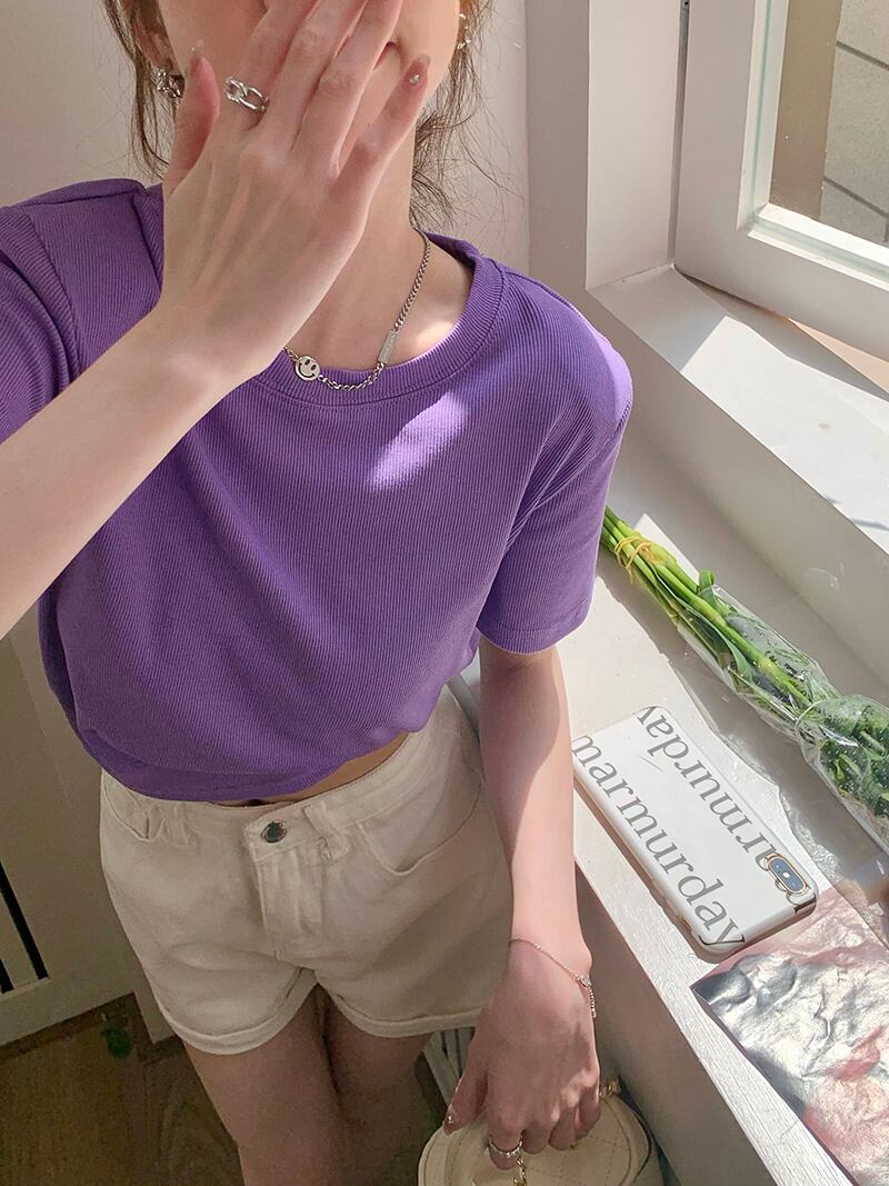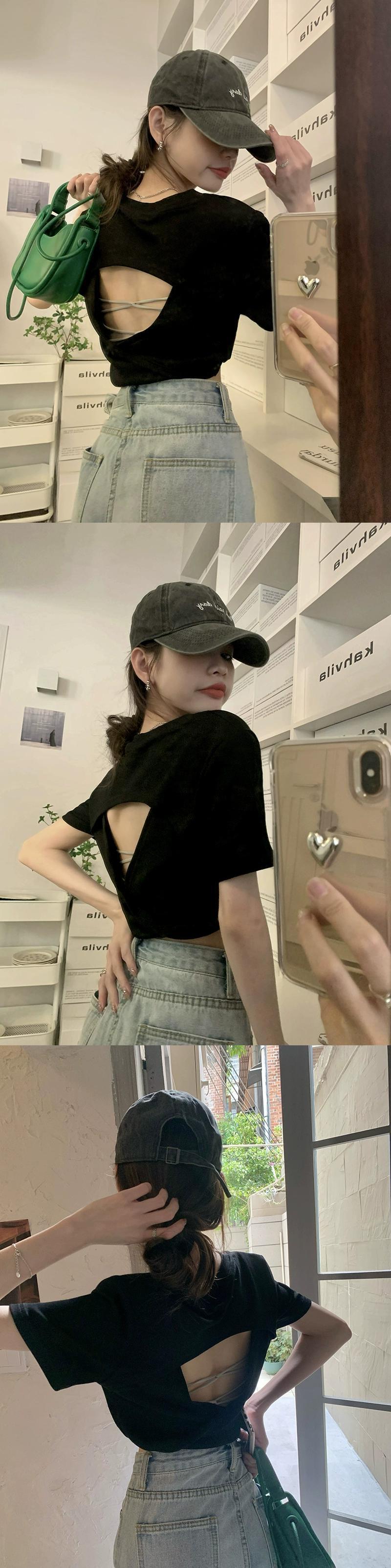 黒のバックレスショートトップレディース2023夏新デザインセンスニッチシック甘辛フロントショルダー半袖Tシャツ ブラック 大人ガーリー スウィート キュート カジュアル サマー 夏物 8571641623775393
