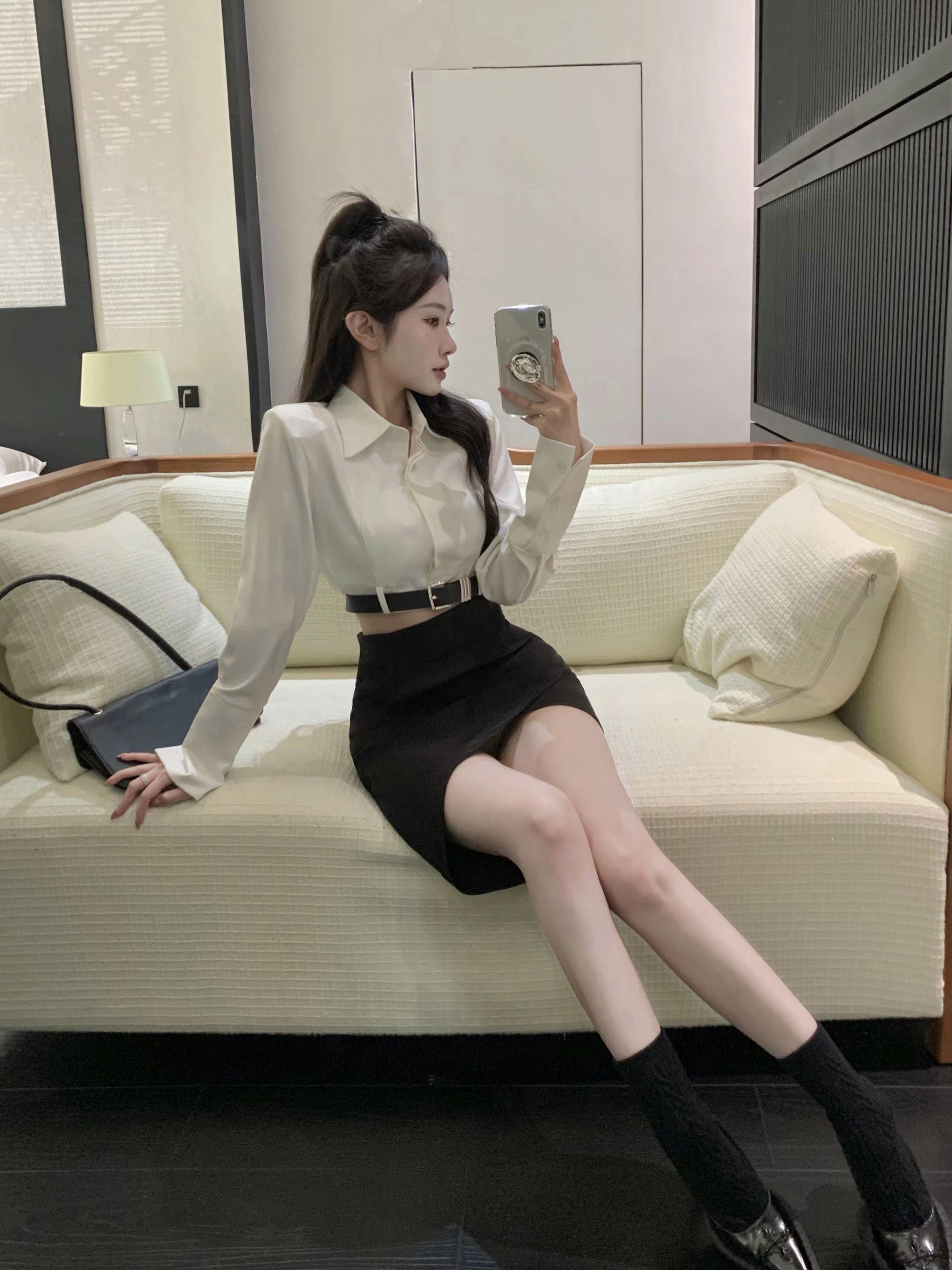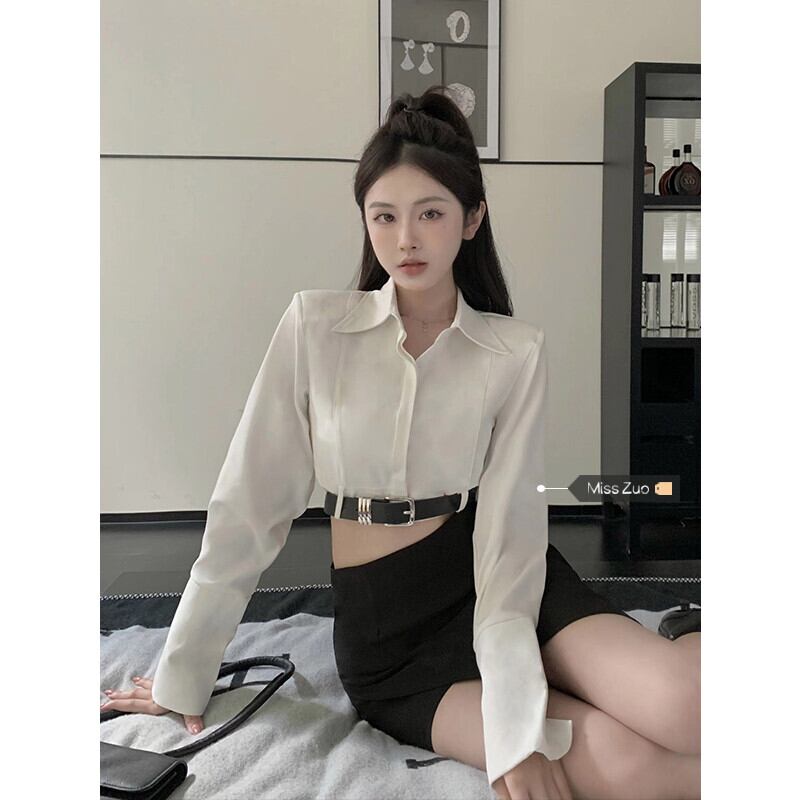 白シャツ女性のデザインセンスニッチショルダーパッドシャツ 2023 初春の新セクシーな純粋な欲望ファッションショートトップ ホワイト スプリング 春物 ピュア 857168839459006