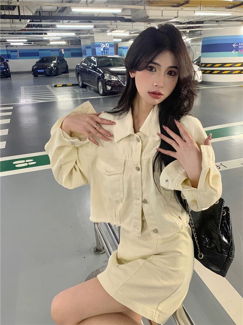 ショートデニムジャケット女性春オールマッチ2023新しいレトロ香港スタイルシックな小さなシックなユニークなトップ スプリング 春物 8571635990560587