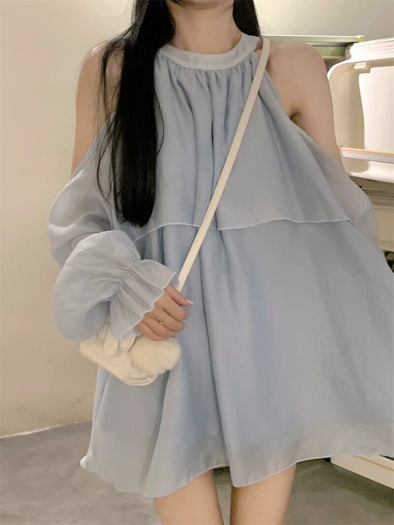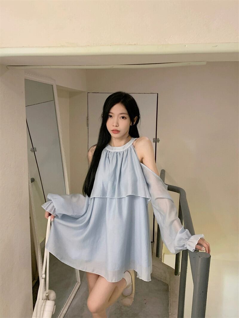 オフショルダー長袖シャツレディースデザインセンスニッチ2023春新作カバーベリーシックで美しい気質トップ ロング スプリング 春物 8571667887132525
