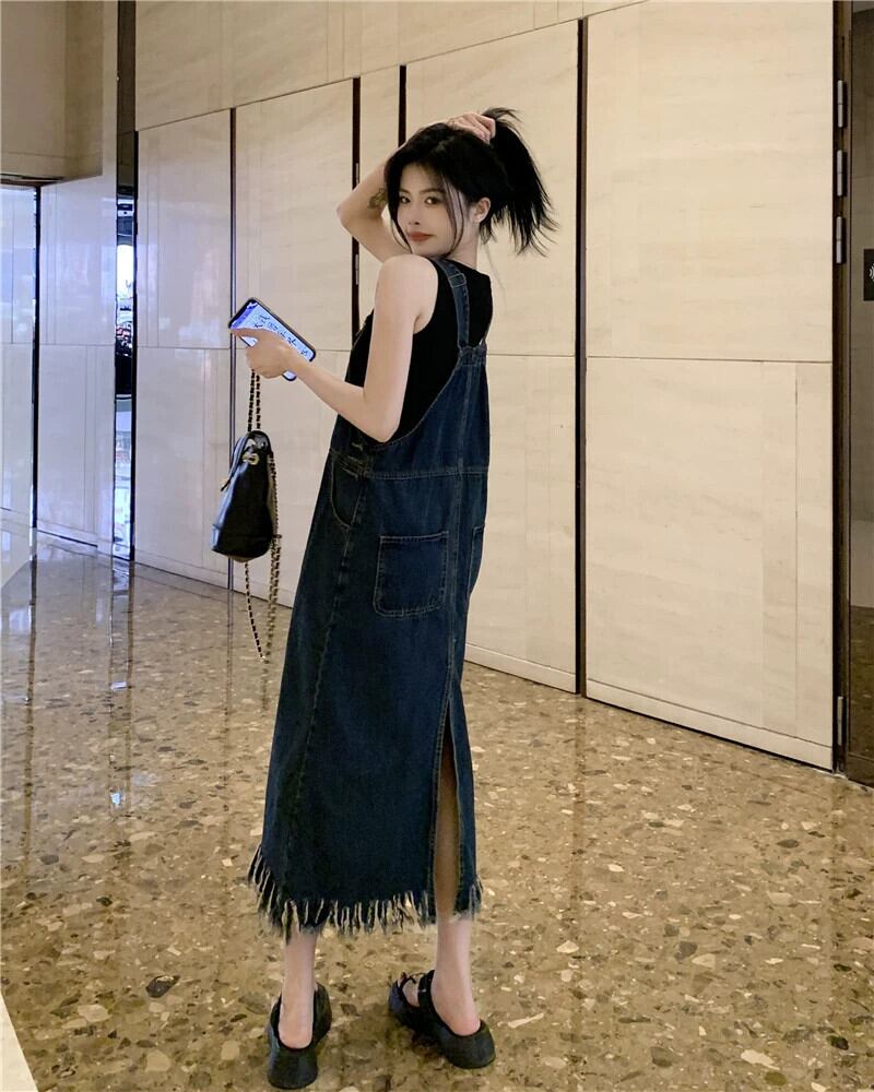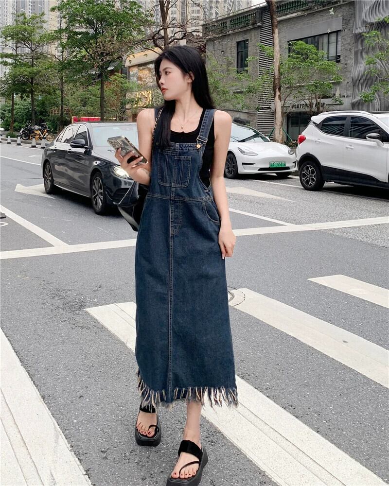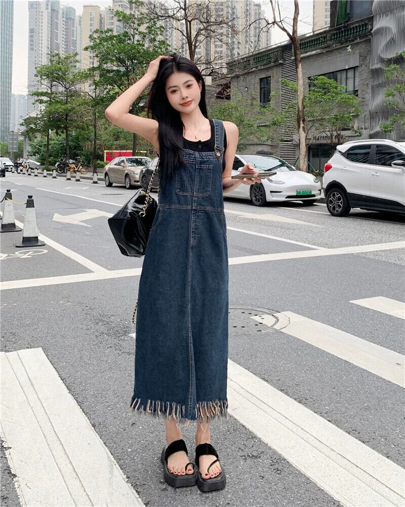 デニム サスペンダー スカート ドレス レディース 2023 夏の新しいニッチ デザイン洋ナシ形の図テル ロング スカート サマー 夏物 8571662941542995