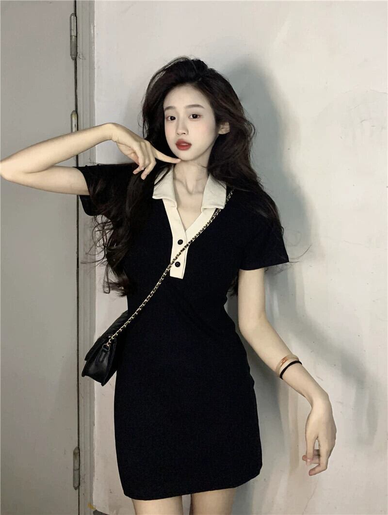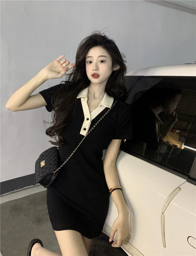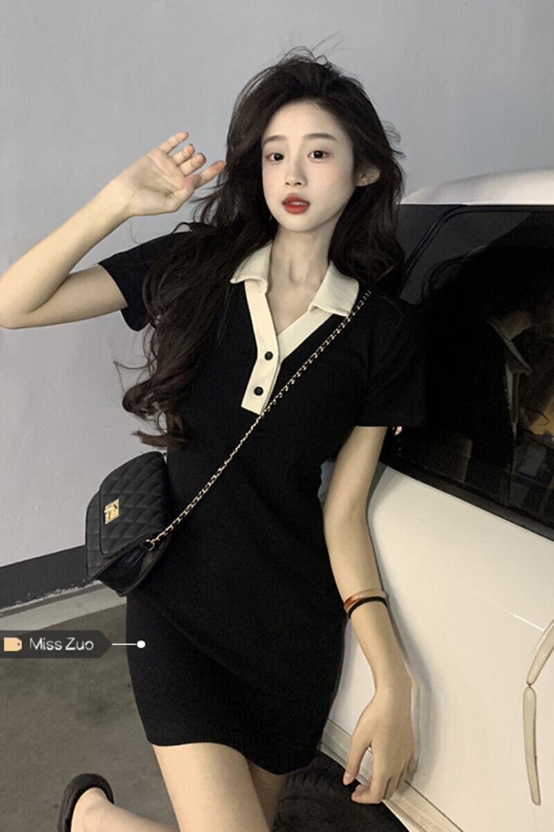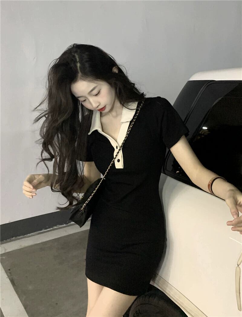 黒半袖ドレス女性の夏 2023 新しい純粋な欲望セクシーなロイヤルシスターライト調理風パッケージヒップショートスカート ブラック サマー 夏物 ピュア 857167635932770