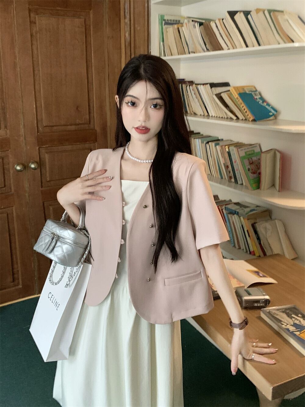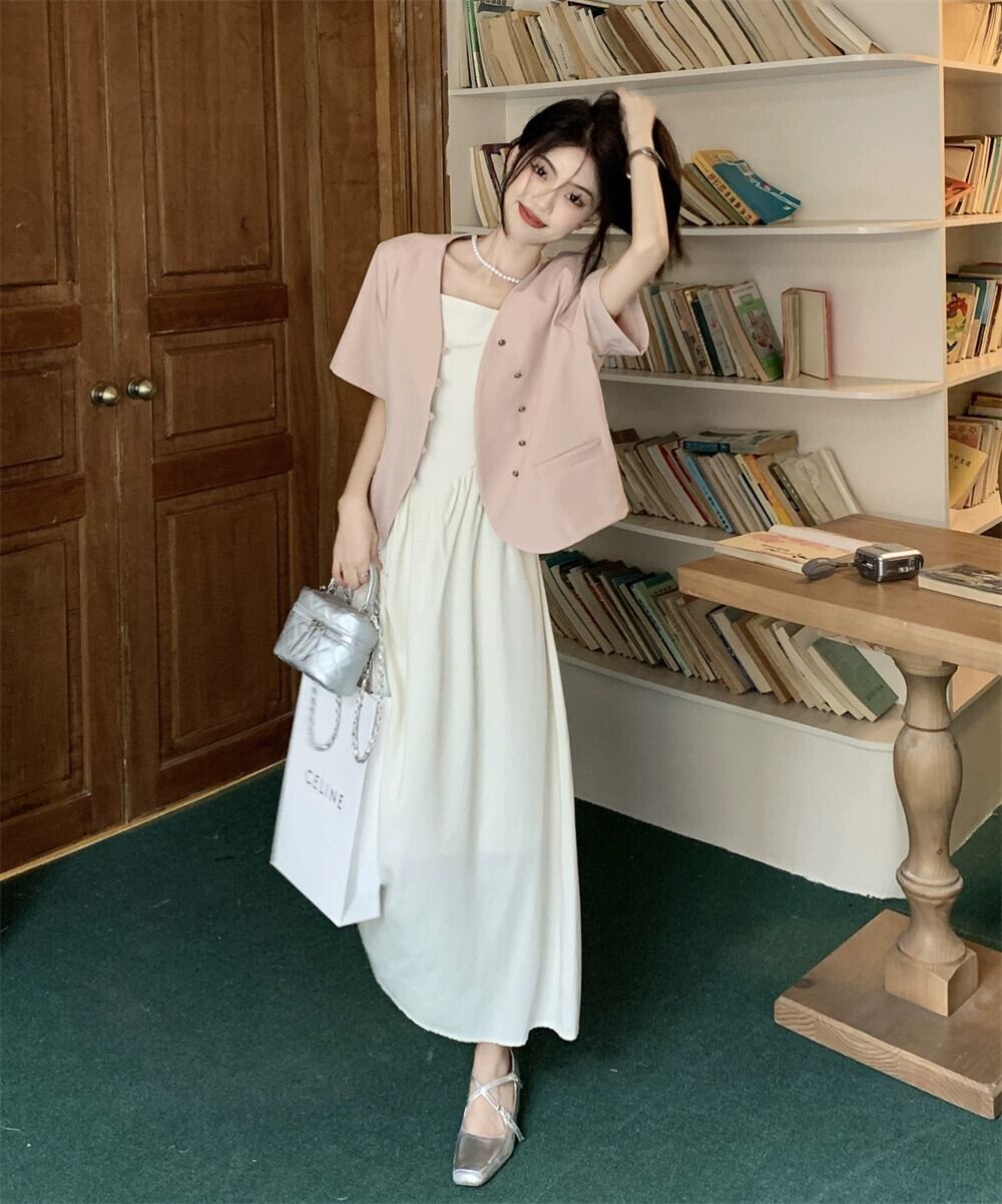 ピンク半袖スーツジャケット女性の夏のデザインセンスニッチ 2023 新しい高級質感カジュアルショートスーツ サマー 夏物 8571654671513676