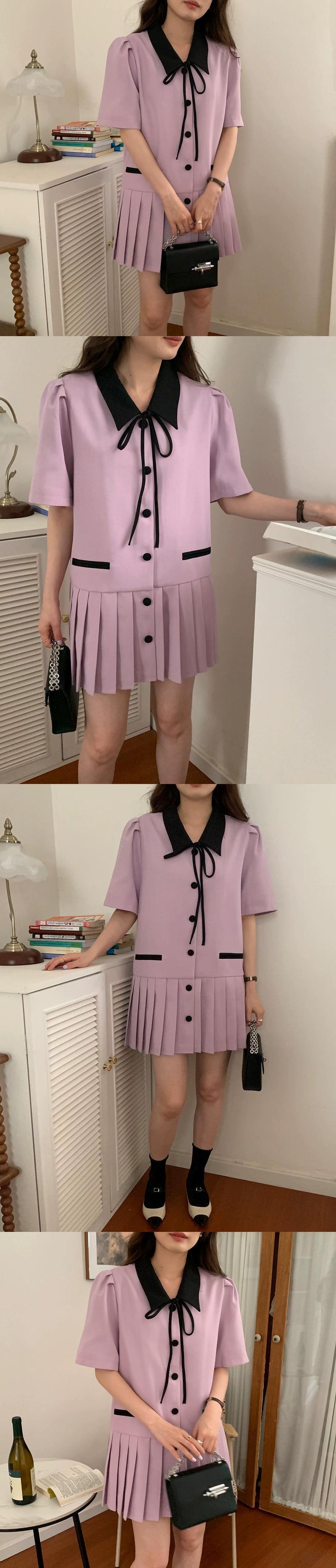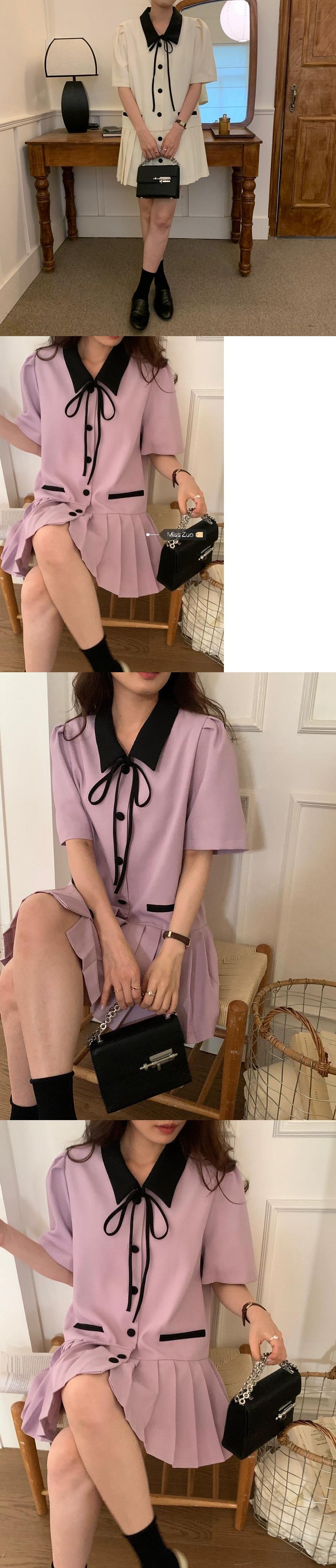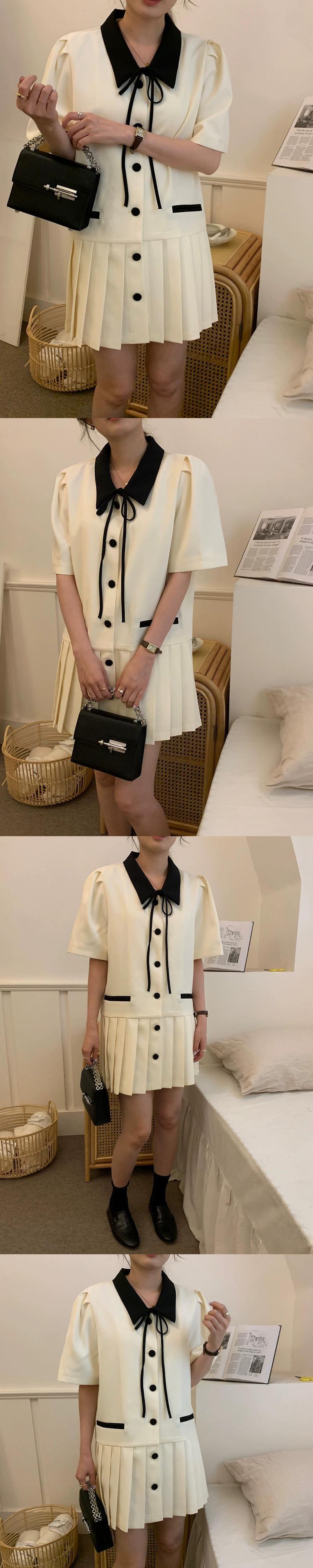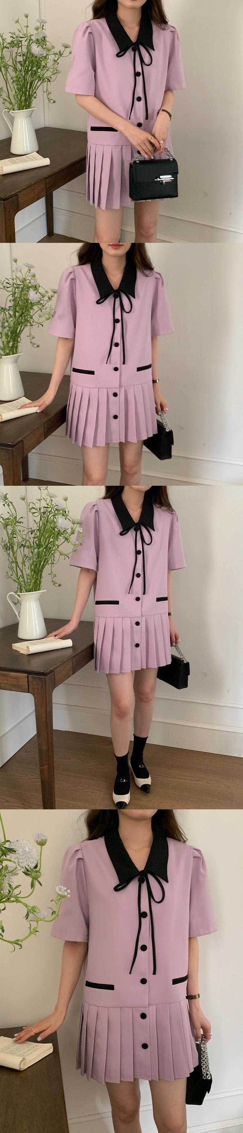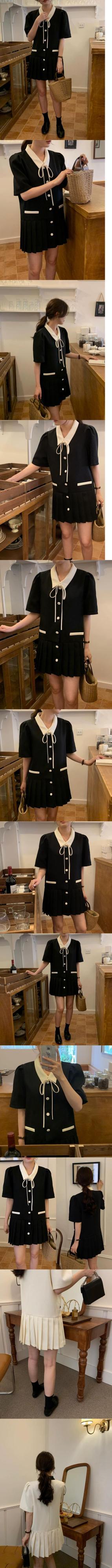 黒のポロドレスの女性の 2023 夏の新しいフランスの気質のハイエンドのデザインセンスニッチプリーツスカート ブラック サマー 夏物 8571678756402308