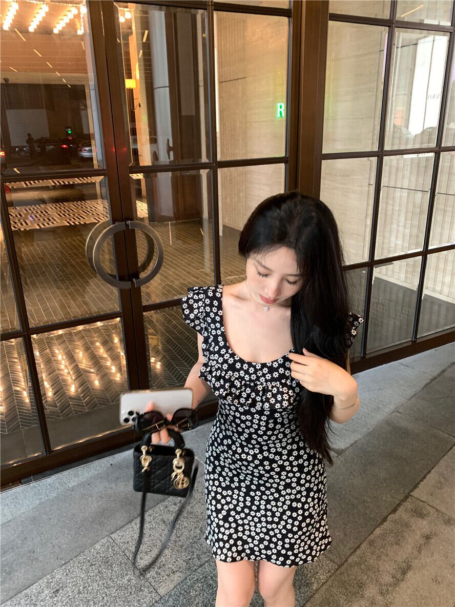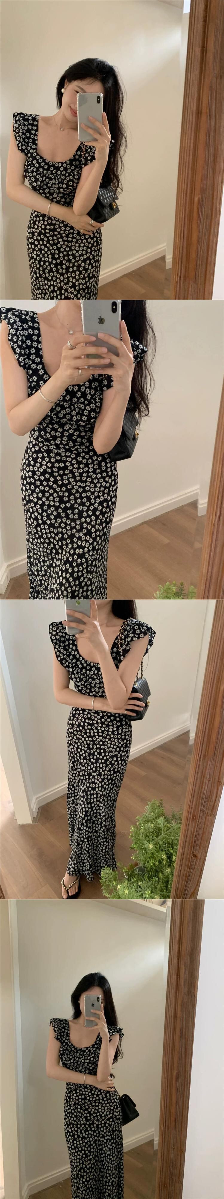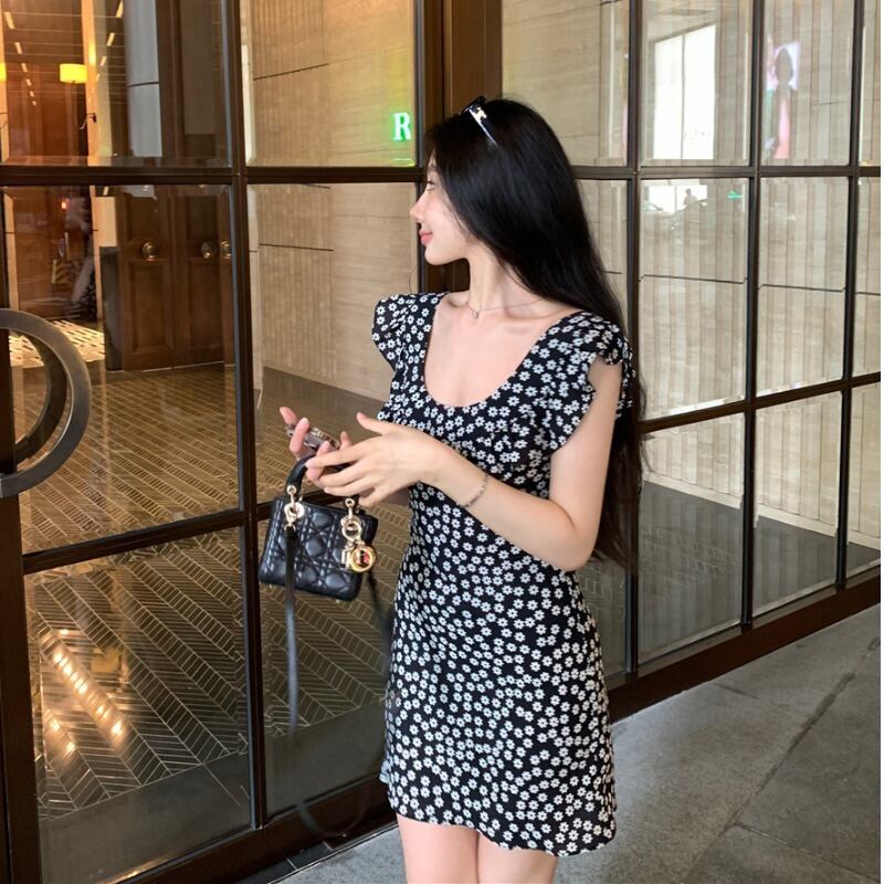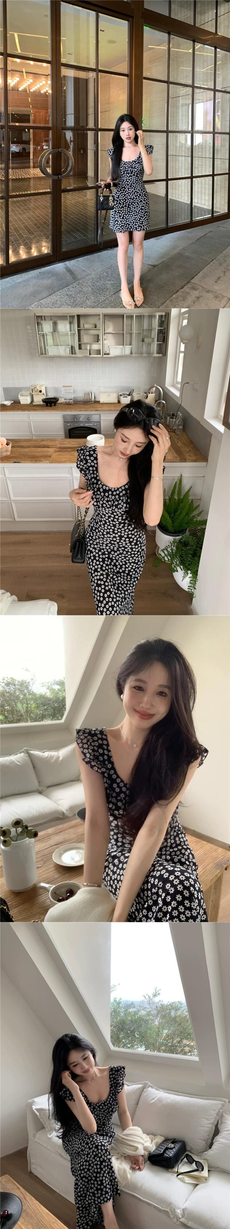 小さなデイジー花柄ドレスの女性の夏の 2023 新しいティーブレイクフレンチスタイルの優しいスタイルの気質フライングスリーブロングスカート サマー 夏物 8571652401704851