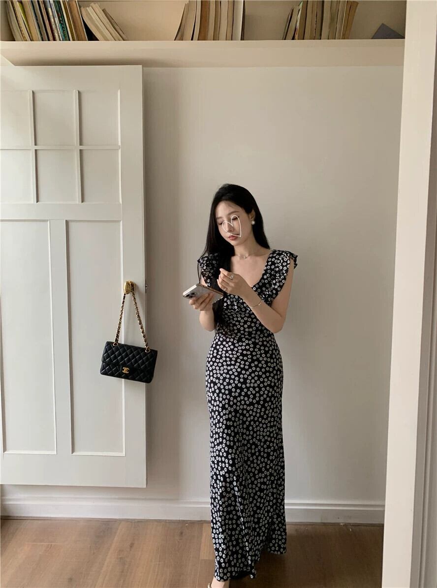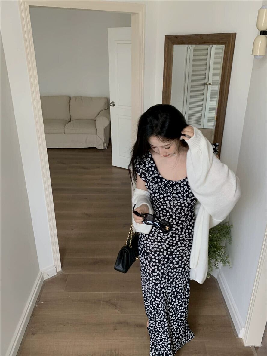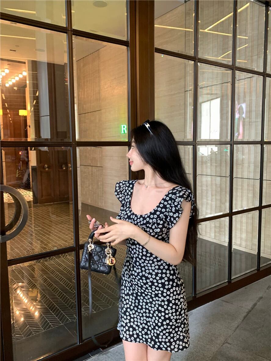 小さなデイジー花柄ドレスの女性の夏の 2023 新しいティーブレイクフレンチスタイルの優しいスタイルの気質フライングスリーブロングスカート サマー 夏物 8571652401704851