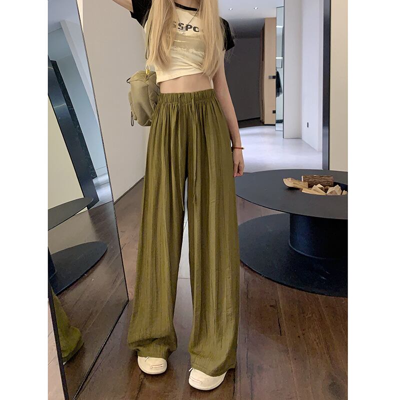 オリーブグリーンワイドレッグパンツレディース夏薄セクション2023新しいハイウエストストレートルーズカジュアルオールマッチモップパンツ サマー 夏物 8571691981934463
