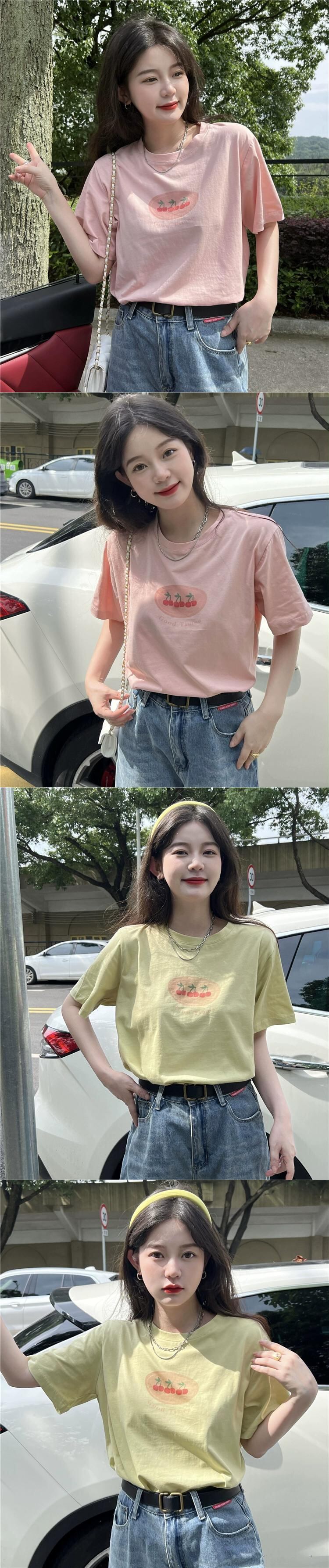 ピンクの半袖 T シャツの女性の 2023 年夏新しいデザインセンスニッチ緩くて薄いユニークなトップス超格好良い サマー 夏物 Tシャツ 857166035175648