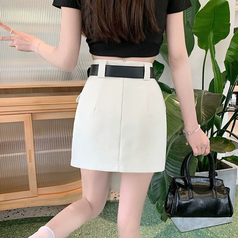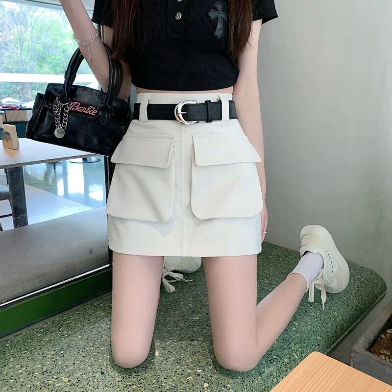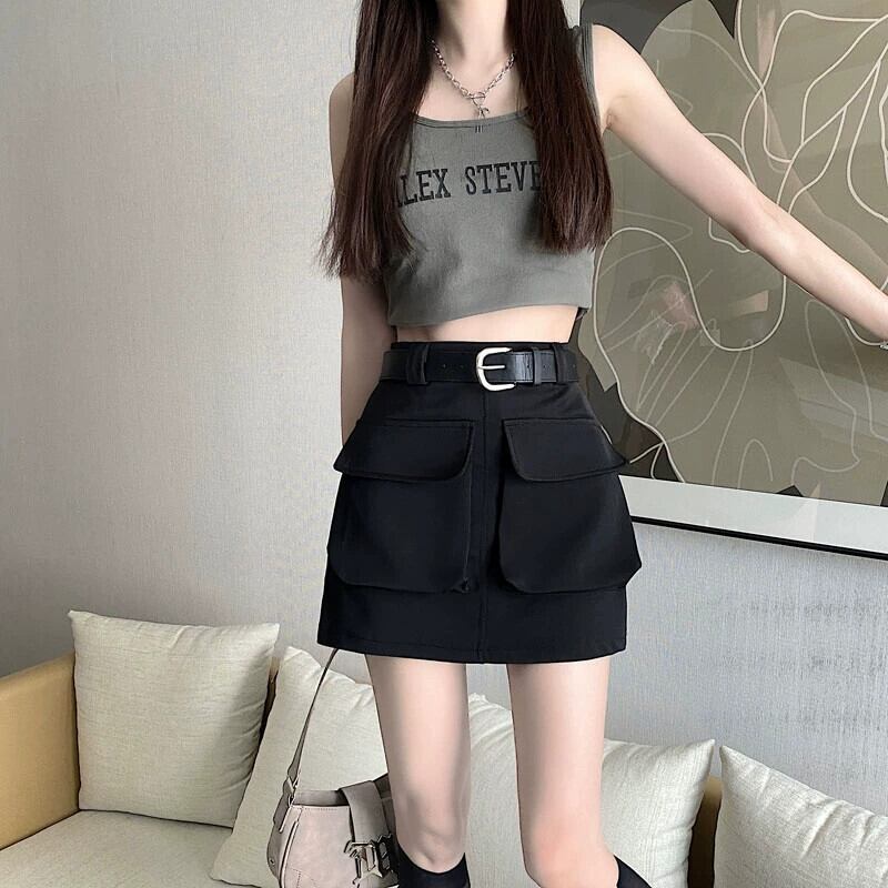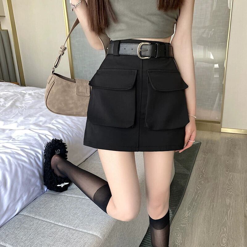 黒ツーリングスカート女性の夏のハイウエスト A ラインスカート 2023 新デザインセンス小男バッグヒップショートスカート ハイウェスト ブラック サマー 夏物 Aライン 8571695274527669