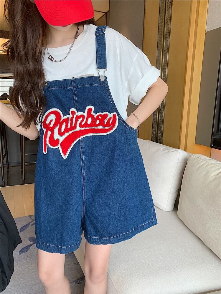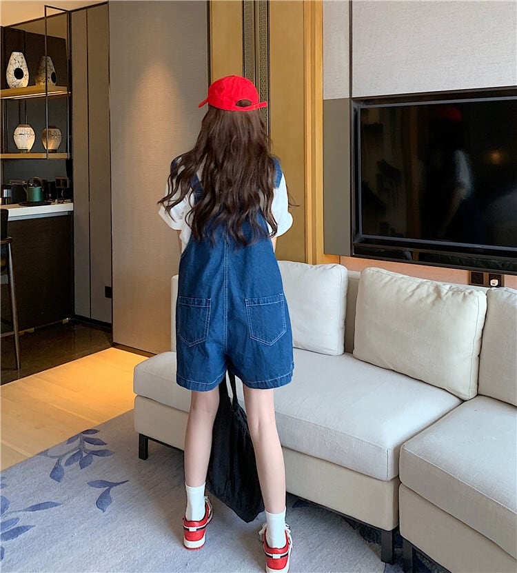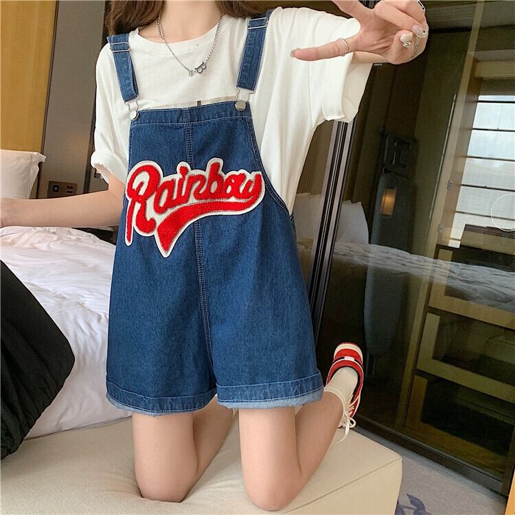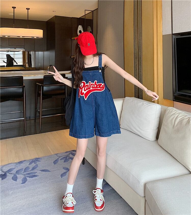 ダークブルーデニムサスペンダーショーツ女性の小さな夏2023新しいミルクフフエセ年齢を軽減するワイドレッグパンツ サマー 夏物 ブルマー 8571633771590444