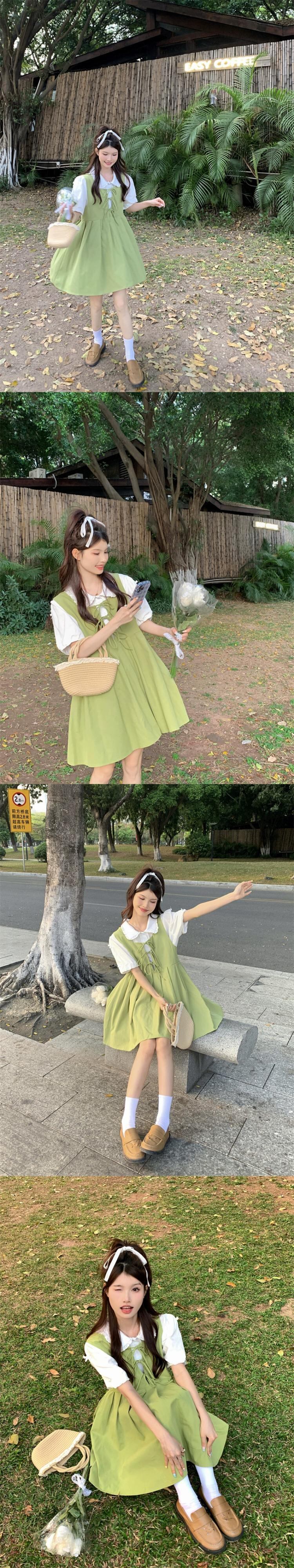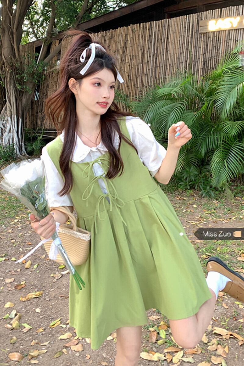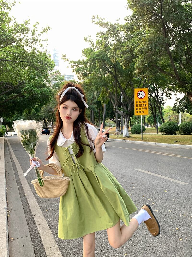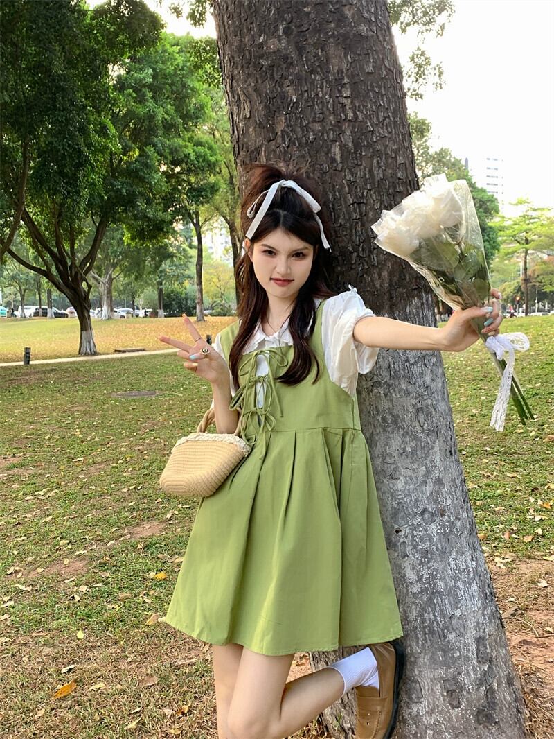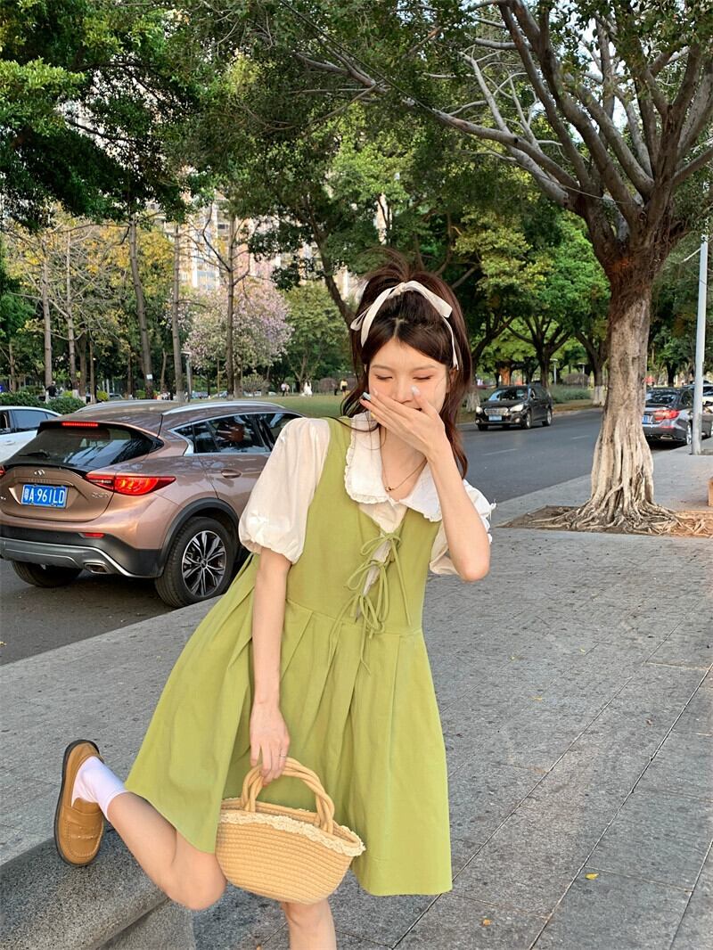 フルーツグリーンサンドレスドレス女性の夏 2023 新しいフランス初恋甘いカレッジ風スカート小男 大人ガーリー スウィート キュート カジュアル サマー 夏物 8571666414876091