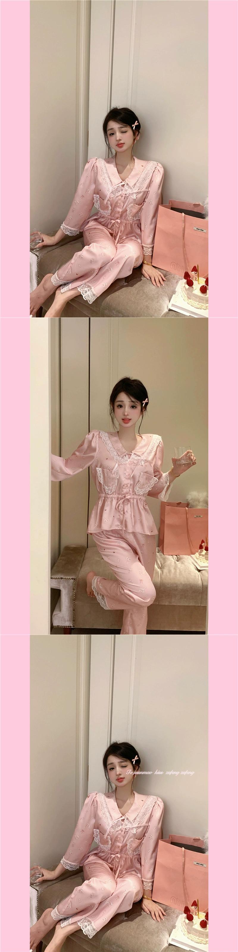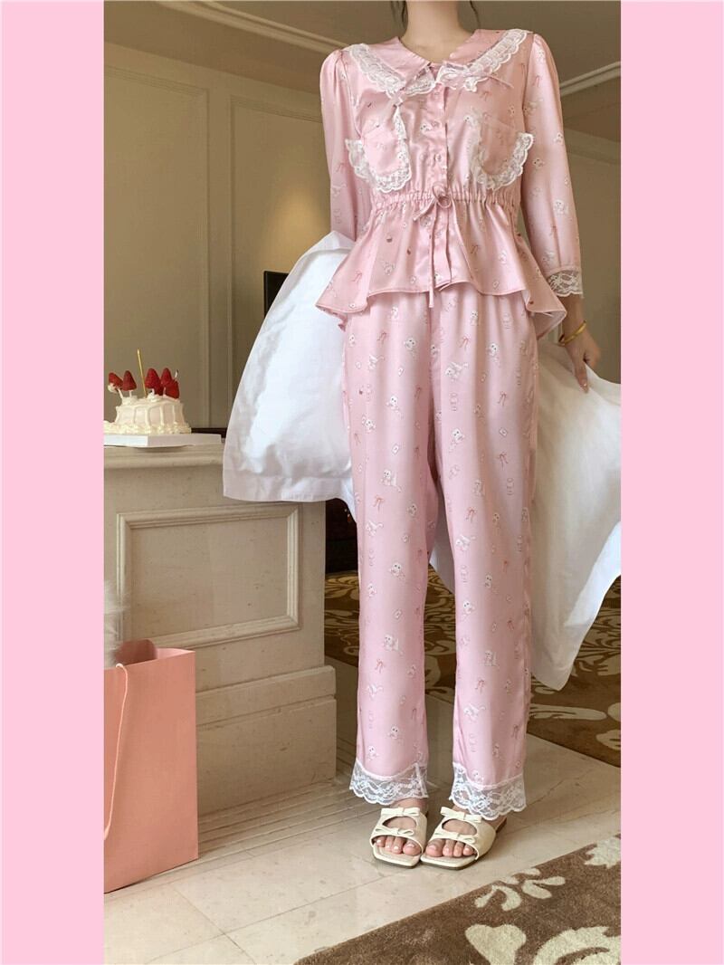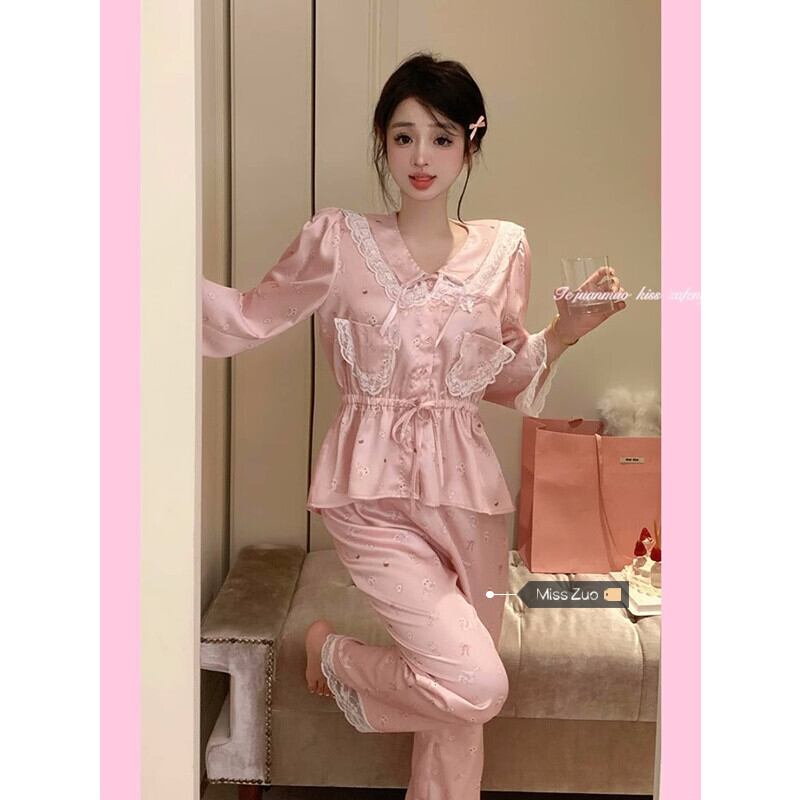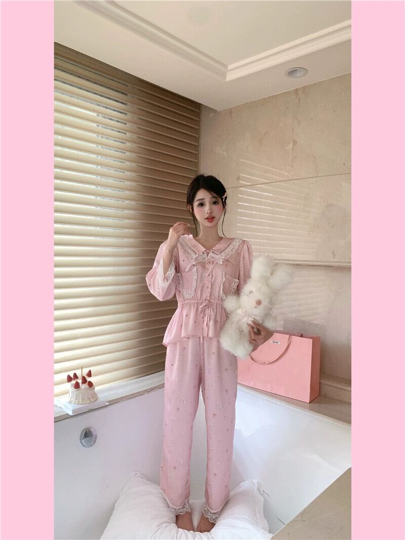 レースレースパジャマ女性は春と秋に屋外で着用できます 2023 新しいフランスの甘い宮廷プリンセススタイルネットレッドホーム服 大人ガーリー スウィート キュート カジュアル スプリング 春物 オータム 秋物 8571683181845300