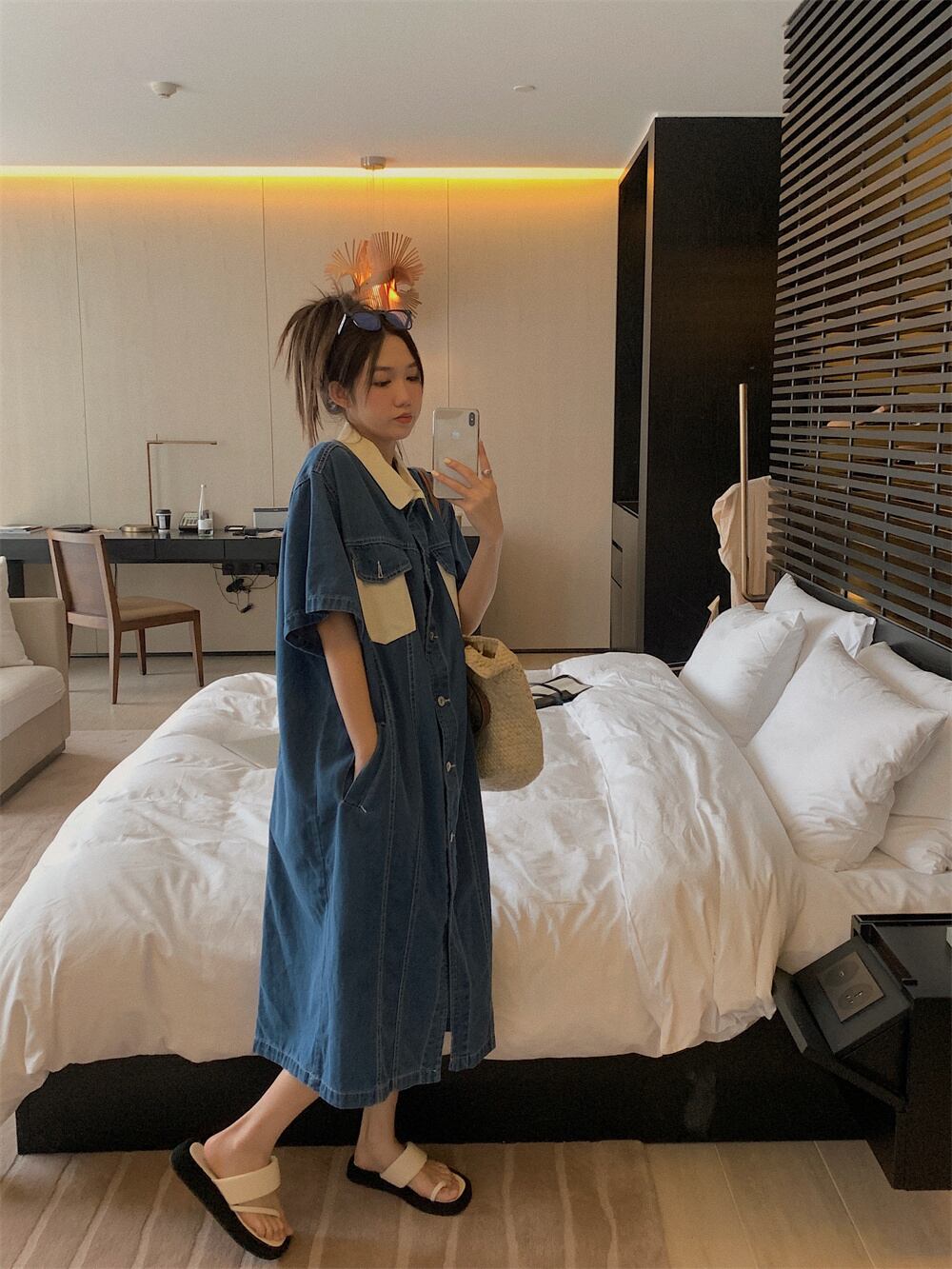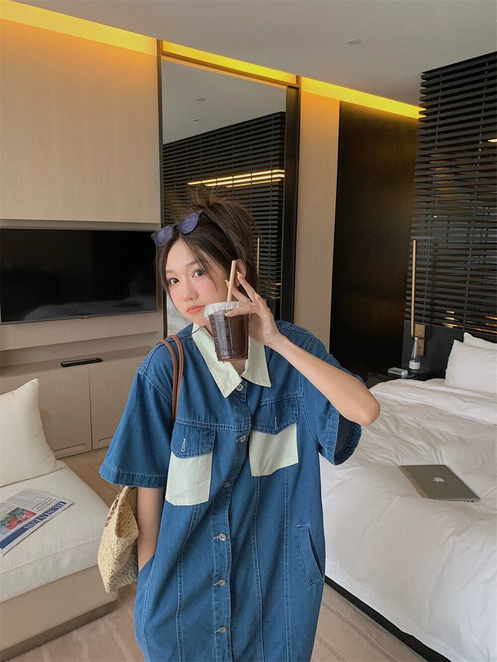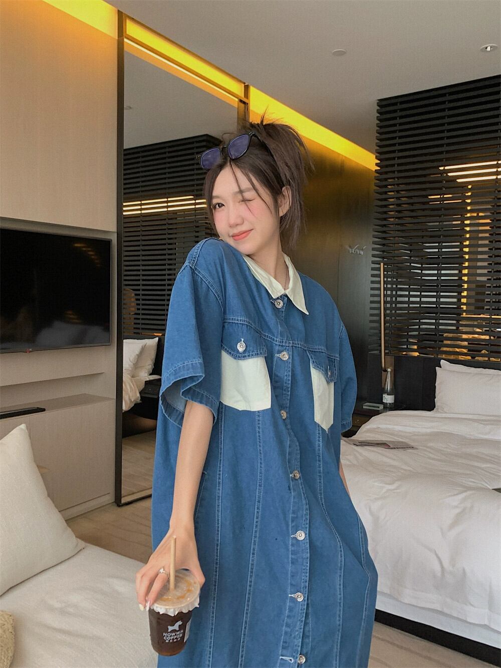 ブルーデニムドレス女性梨型フィギュア夏2023新しいデザインセンスニッチ小人スリムスカート サマー 夏物 857165036436884