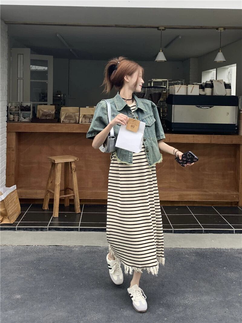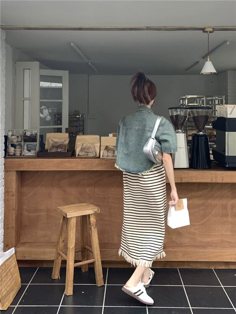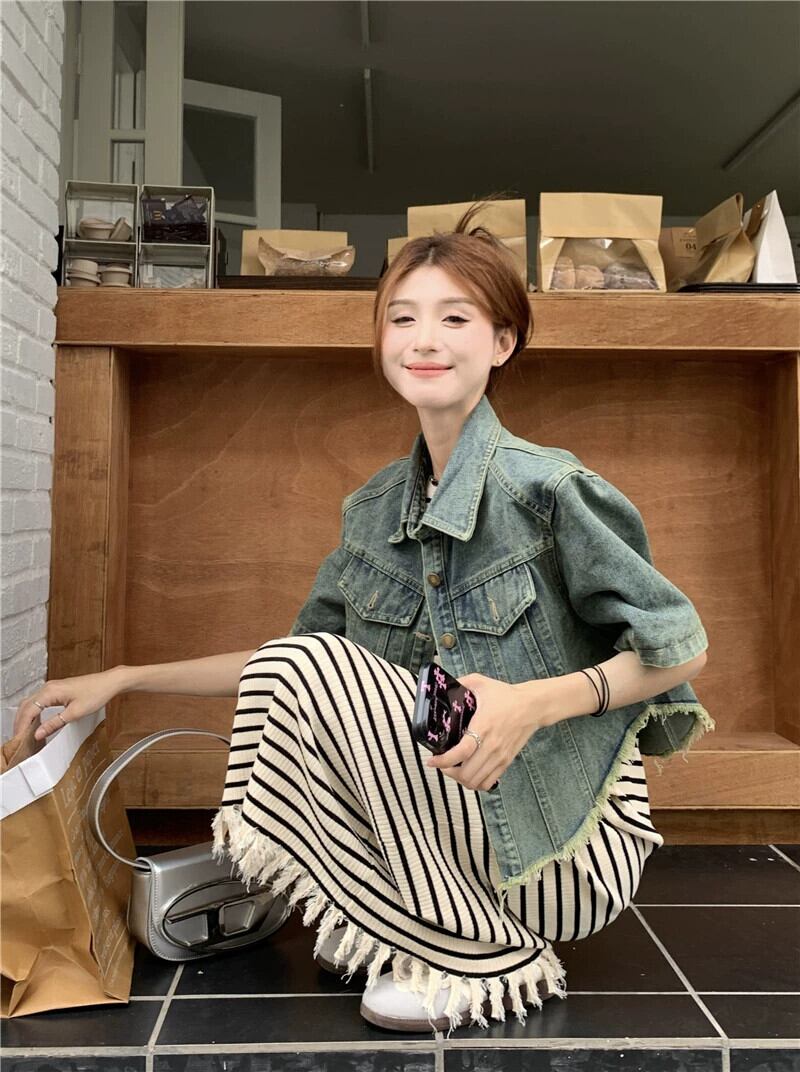半袖デニムジャケット女性小男性夏 2023 新しい人気スタイルレトロ香港スタイルのシックなショートトップ サマー 夏物 8571648539822179