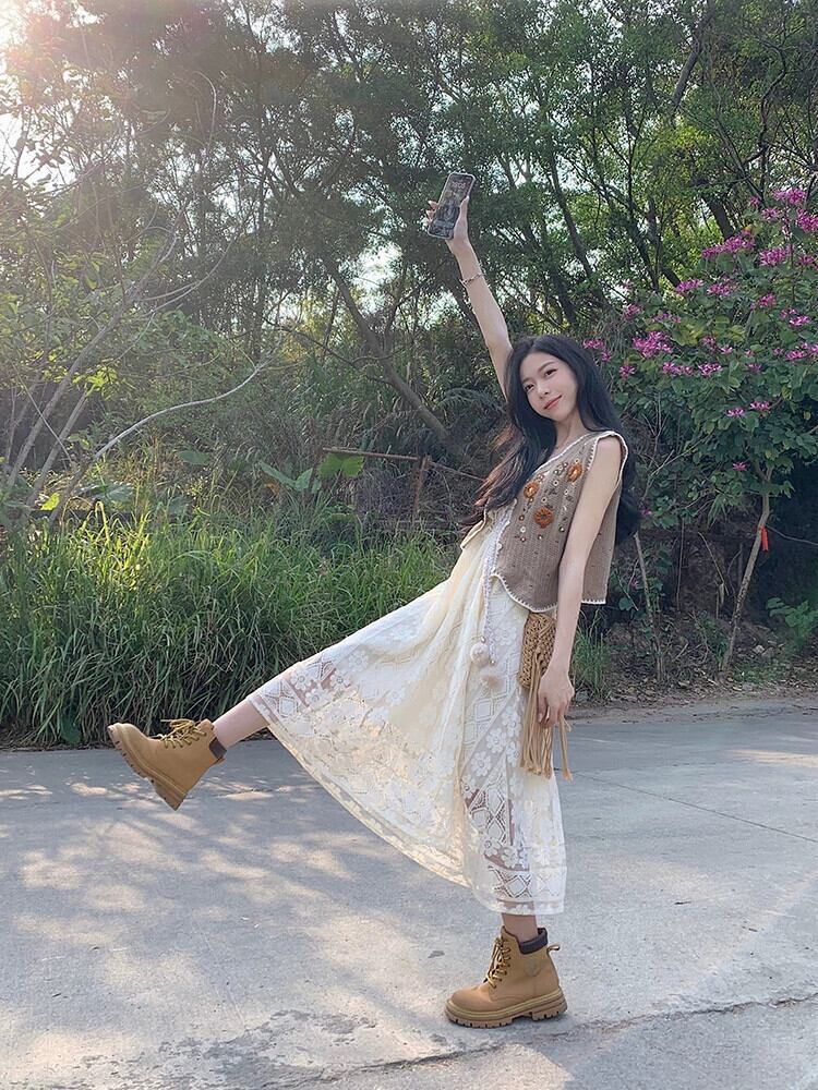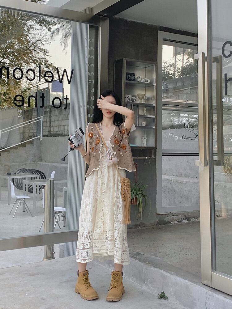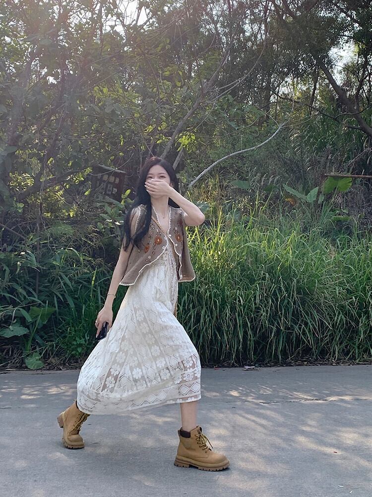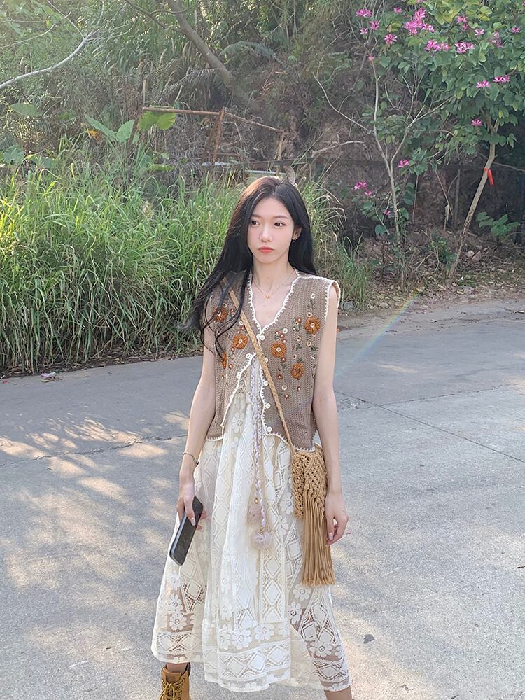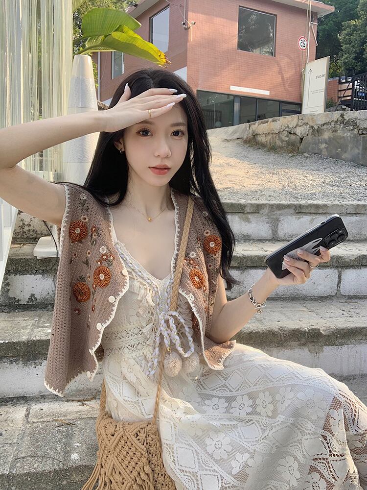 レースサスペンダードレスレディース夏ニッチデザインセンス優しい風スーパーフェアリーシーサイドバケーションビーチロングスカート サマー 夏物 8571630258315610