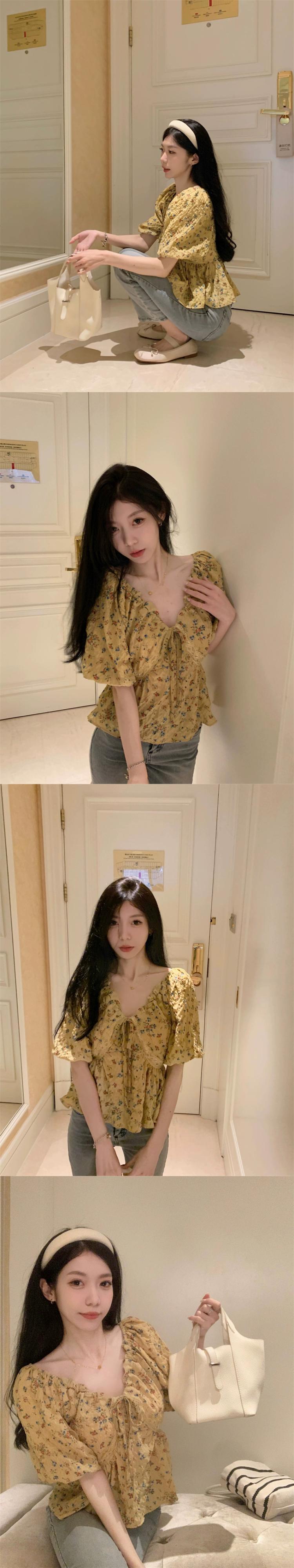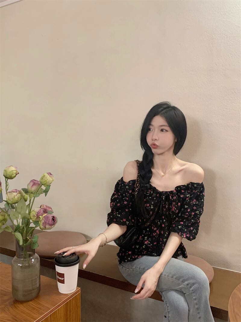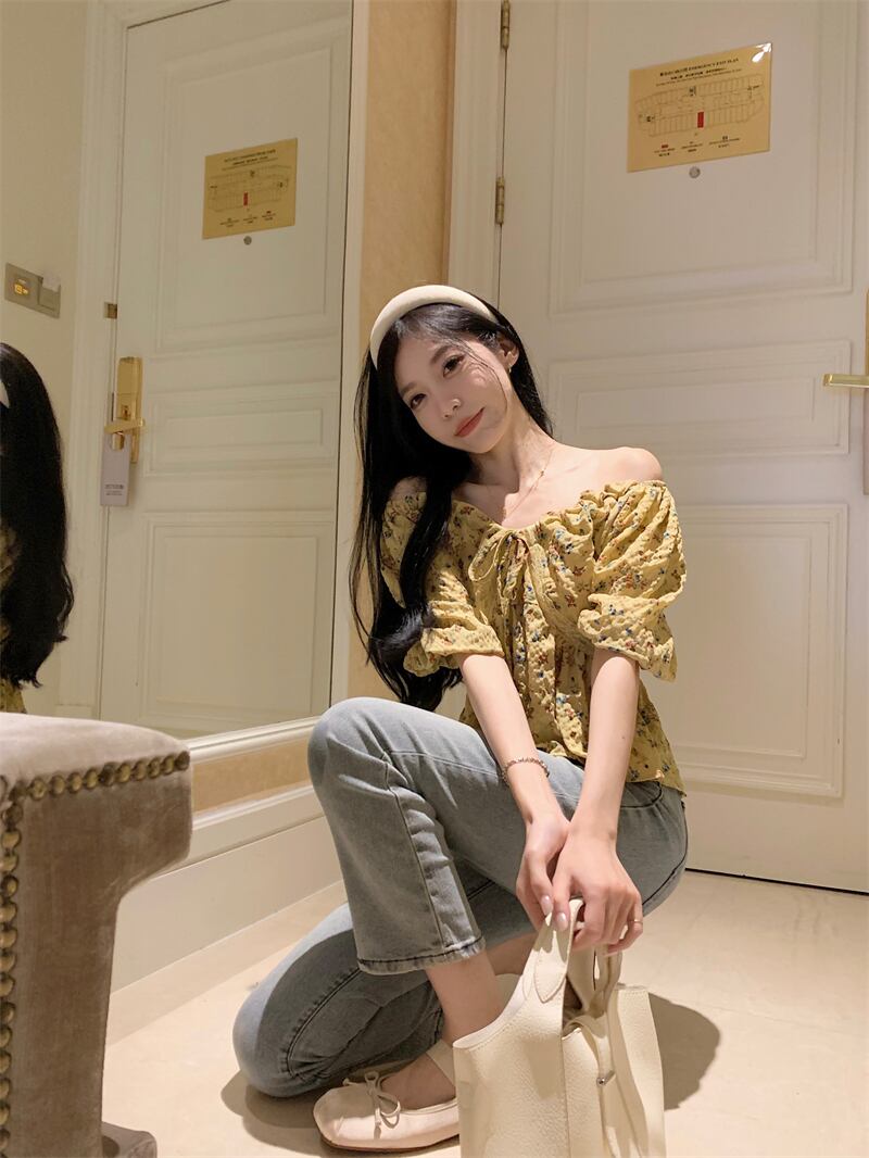 パフスリーブショートトップレディース夏デザインセンスニッチフレンチユニークシック美しい半袖花柄シャツ サマー 夏物 857164766813841