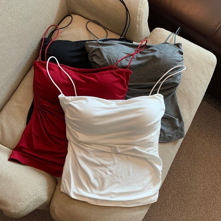 グレー キャミソール レディース ラップ胸インナー 夏 胸パッド付き 1 枚の美しい背中の下着底付けアウター セクシーなトップ サマー 夏物 8571687024615798