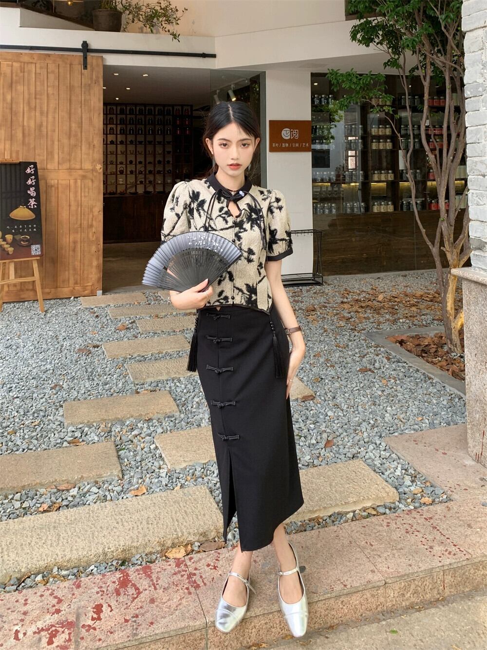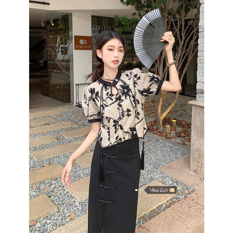 改良されたチャイナドレススタイルのバックルトップ女性の夏のデザインセンスニッチな新しい中国風のレトロな国民風のショート半袖シャツ サマー 夏物 8571658375705763