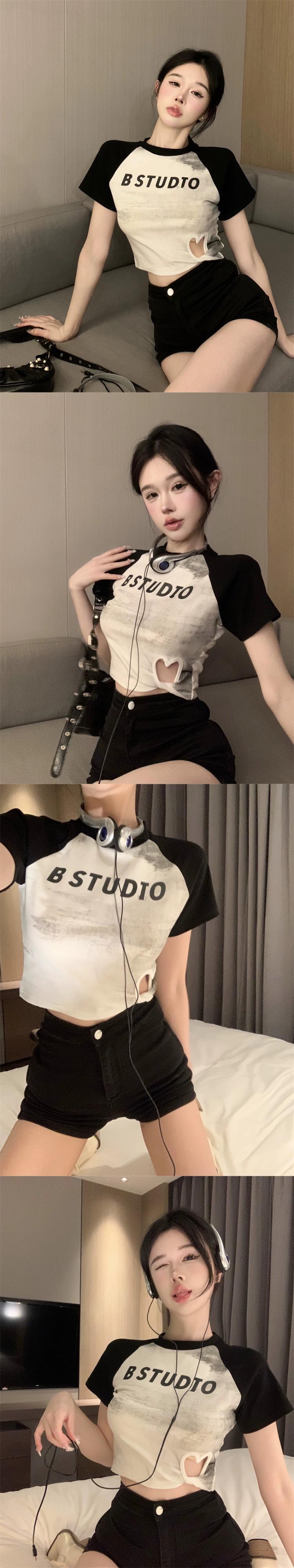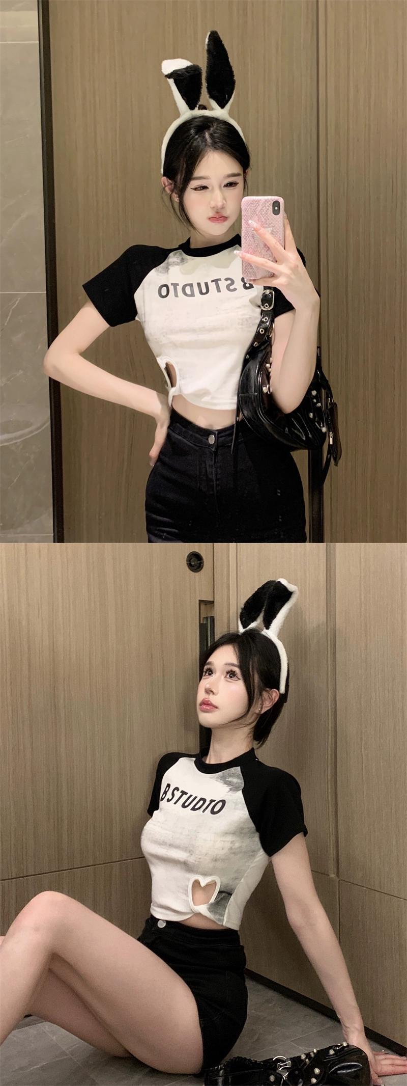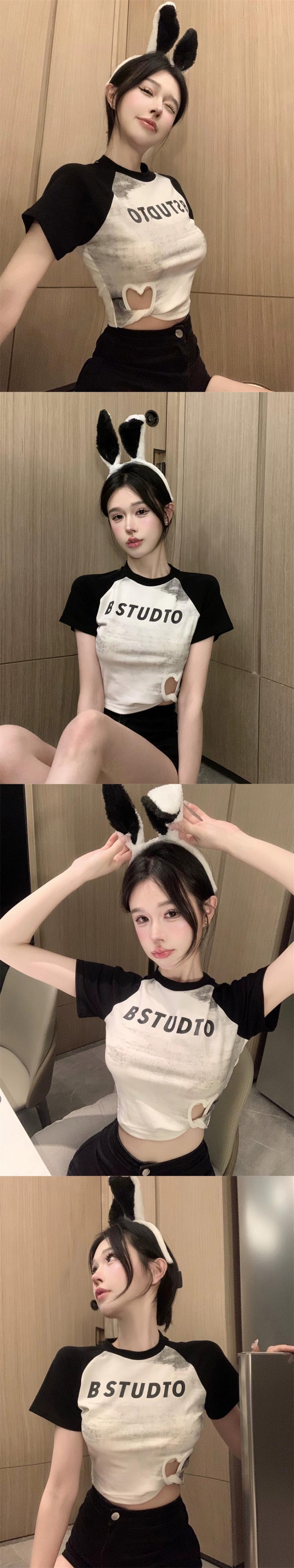 タイダイ半袖Tシャツ レディース 夏 デザインセンス こだわりマシン アメリカンレトロ くり抜きウエストショートトップ サマー 夏物 857167381238444